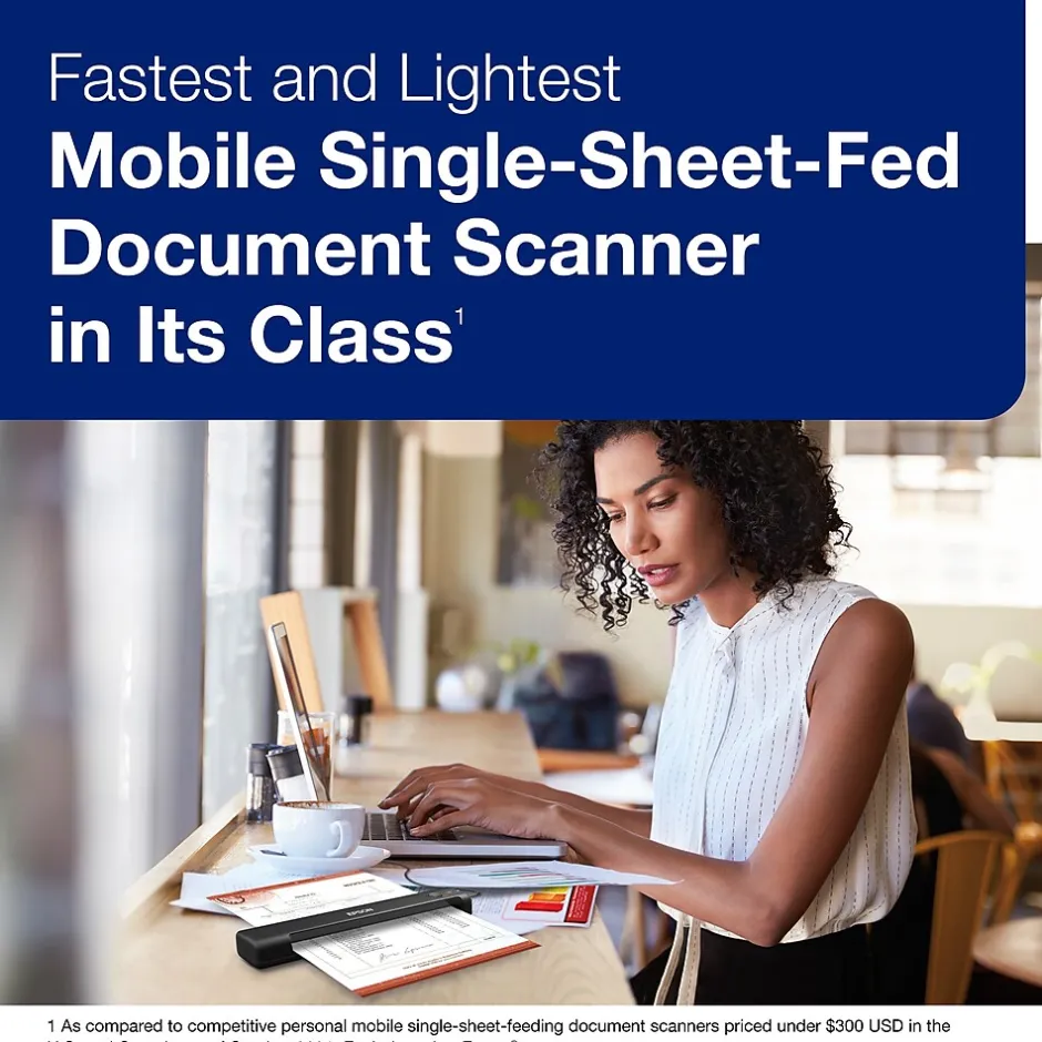 - Fastest and lightest mobile single-sheet-fed document scanner in its class ― small, portable scanner ideal for easy, on-the-go scanning