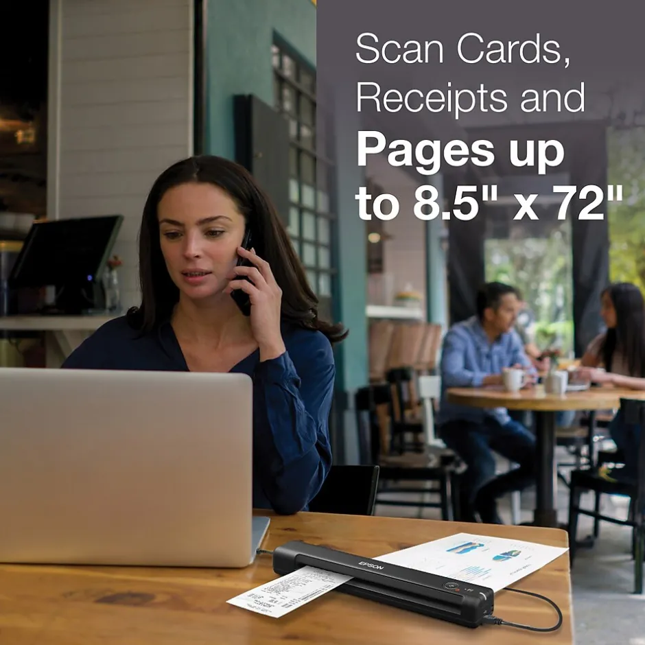 The fastest and lightest mobile single-sheet-fed document scanner in its class, the WorkForce ES-50 features fast speeds ― scanning a single page in as fast as 5.5 seconds. This small, portable scanner accommodates extra-long pages, ID cards and more. Epson ScanSmart Software enables you to easily scan, review and save important files, while the Automatic Feeding Mode makes it easy to combine multi-page scans into one file. With Nuance OCR included, you can create searchable PDFs and editable Word and Excel files. Windows and Mac compatible, the scanner also includes a TWAIN driver. And, no batteries or external power are required when it’s is connected to a computer via the USB port.