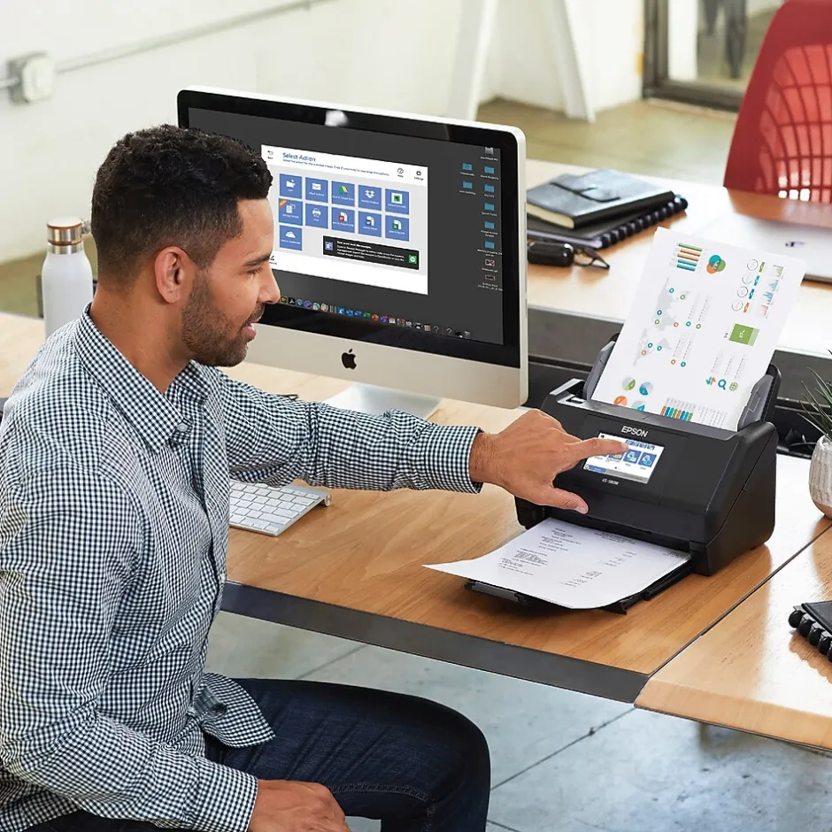 - Powerful software included — easy scanning with intuitive Epson ScanSmart Software; preview, email, upload to cloud and more; automatic file naming saves time