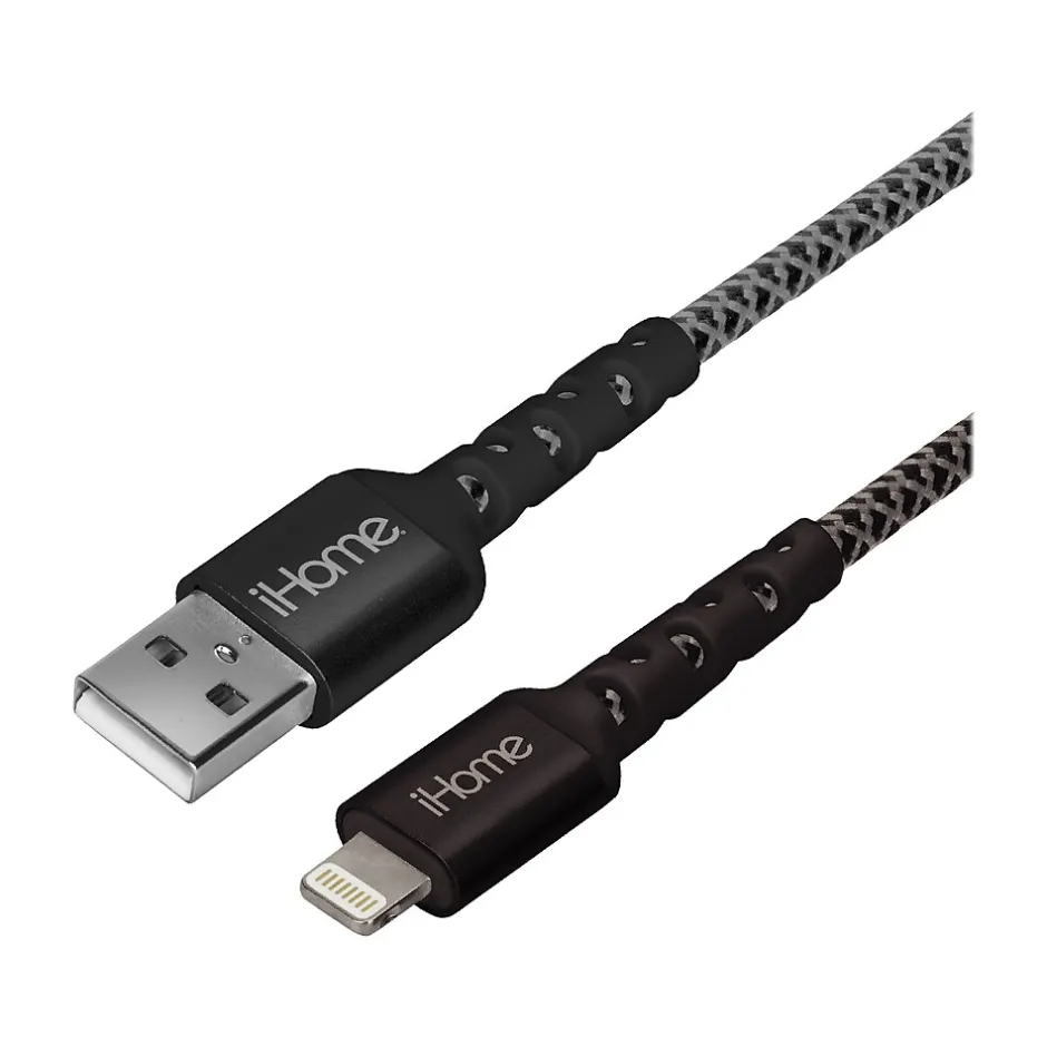 Strain defense with the iHome patented strain-resistant system. Features aluminum-reinforced connector housings. The iHome cable lasts up to 24 times longer than standard cables. Includes a silicone cable wrap.