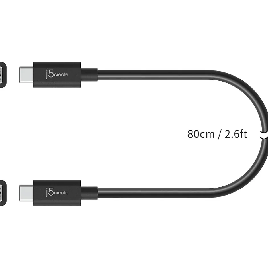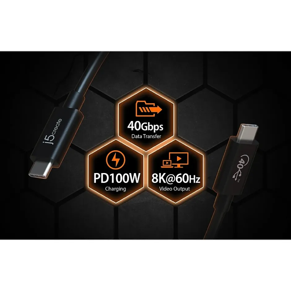The j5create USB-IF certified full-featured USB Type-C cable (USB4 Gen 3) has a USB Type-C connector (USB4) and Power Delivery 3.0 E-Marker. Power Delivery and data transfer between smartphones, tablets, and laptops are supported by the cable. It has a high maximum data transmission rate of 40Gbps for quick data transfers and a Power Delivery charging capacity of 100W. The cable also supports up to one 8K displays and dual 4K dual displays when connected to devices that support video output, such as a Thunderbolt 4 docking station.
