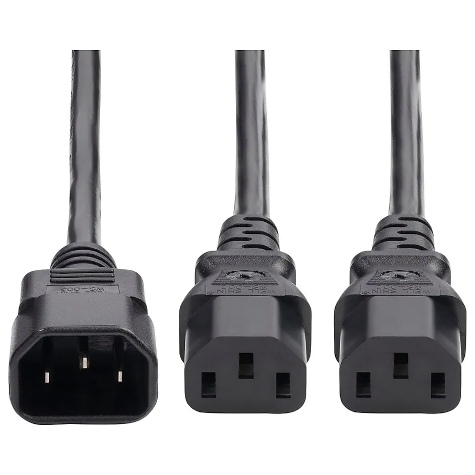 - Features IEC 60320 C14 to 2 x IEC 60320 C13 connectors