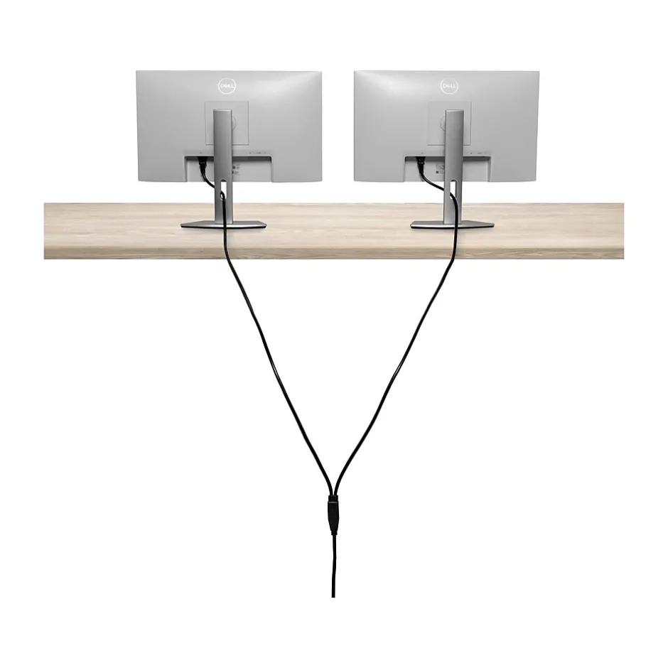 - Split a single power cord to power two devices or dual monitors with this power cord Y splitter