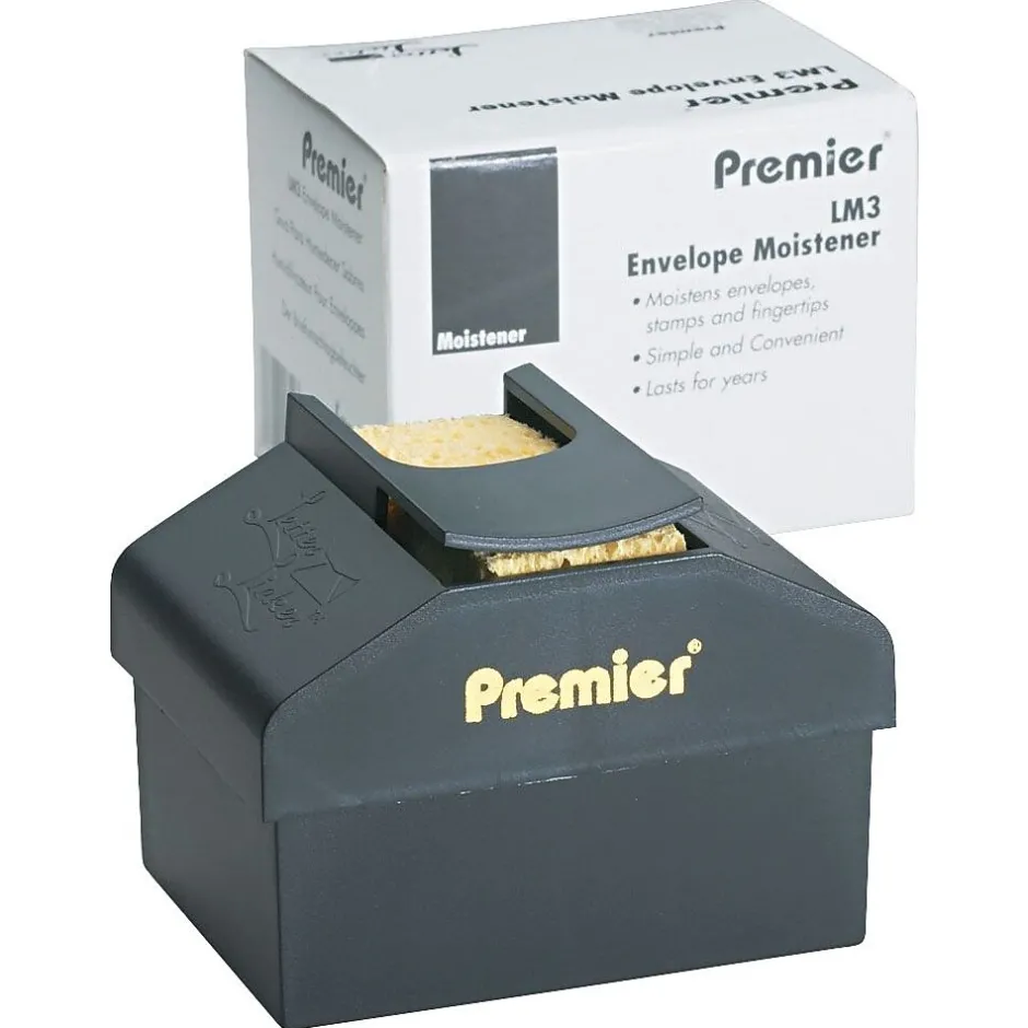 - Easily moistens all sizes of envelopes in one mess-free pass