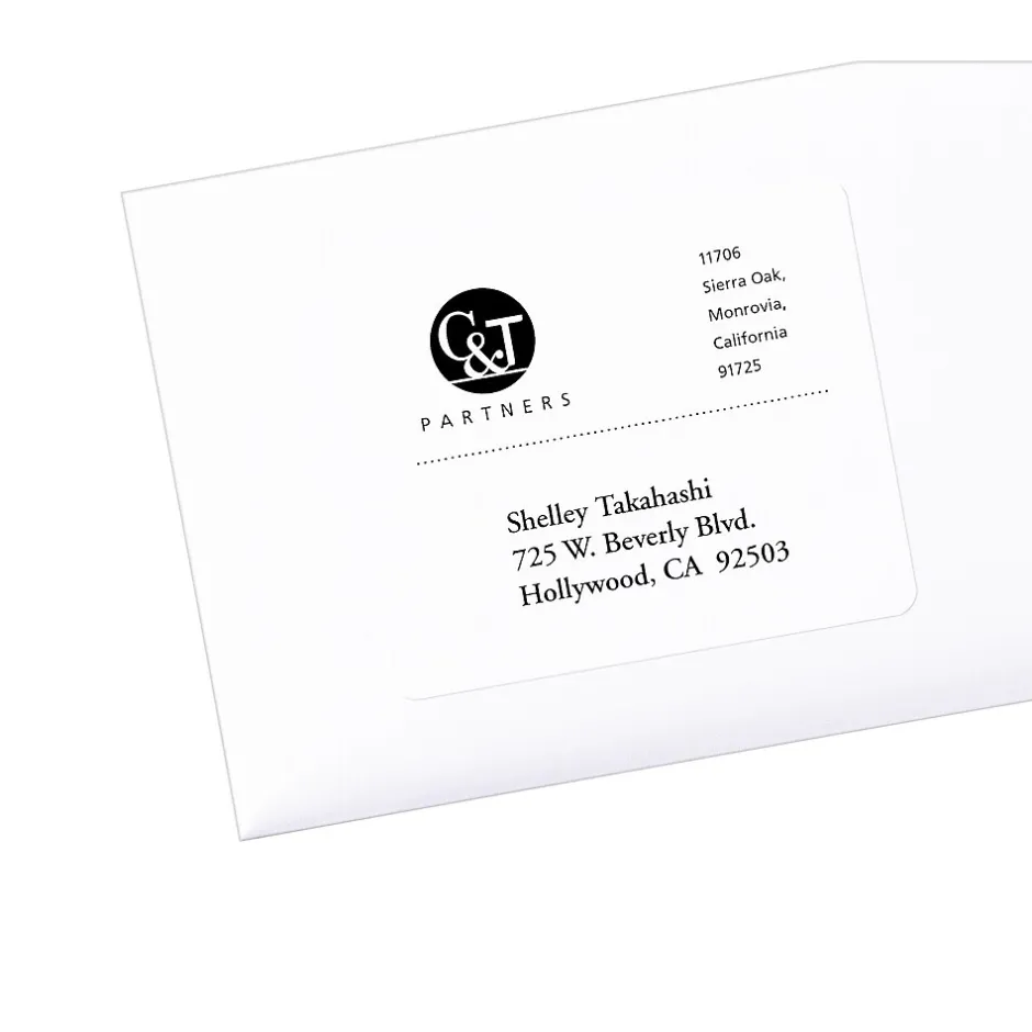 Generate custom address labels easily with this 100-pack of address shipping label sheets. The standard letter-sized pages each contain six labels and feed directly from a printer paper tray without jamming. These Pres-a-ply laser/inkjet address labels are made with a permanent adhesive so they don’t come off packages during shipping.