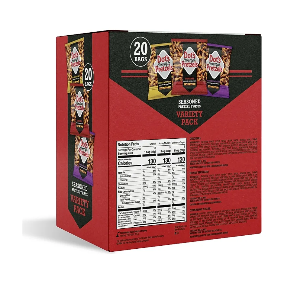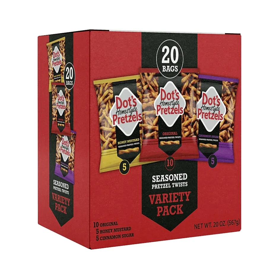 The Dots Homestyle pretzels make the best flavor addition to a classic sweet and salty trail mix. This variety pack includes Original, Honey Mustard, and Cinnamon Sugar flavors.