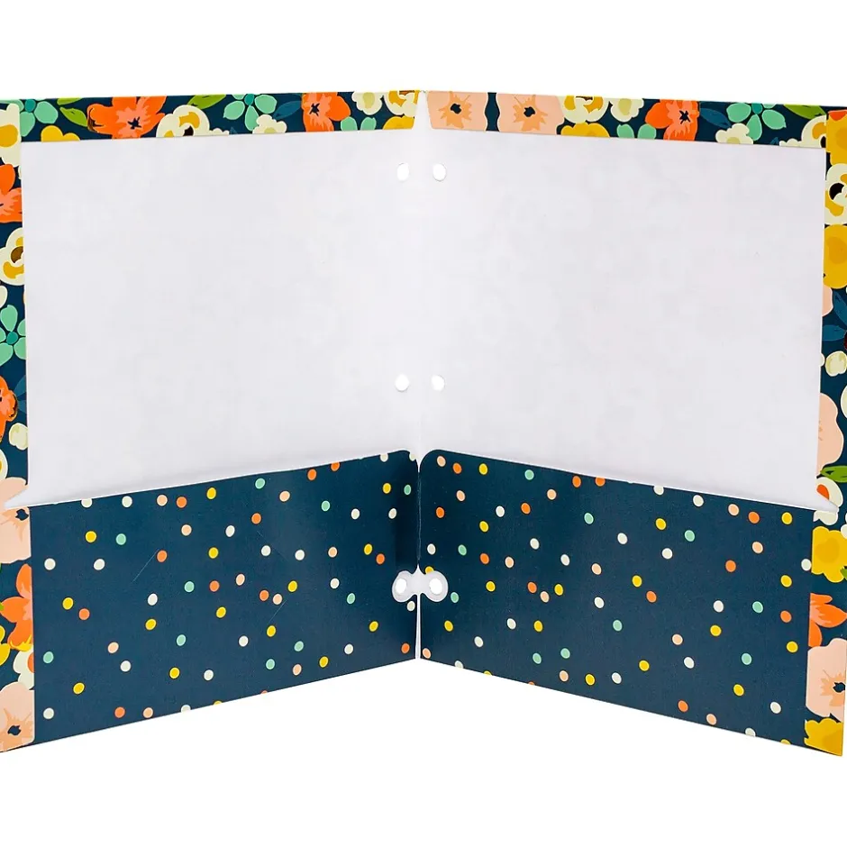 The Carpe Diem Floral Love pocket portfolios can be used to protect all your important papers. Two large pockets ensure your work remains neatly organized while providing easy, convenient access. Perfect for school, work, and project organization, the portfolios have two interior pockets and a die-cut slot to hold a business card or label. Update the mundane with these stylish folders that look great in an academic, professional, or community setting. Three-hole punched for easy use with your favorite binder (standard three-ring binder), and durable enough to use independently.