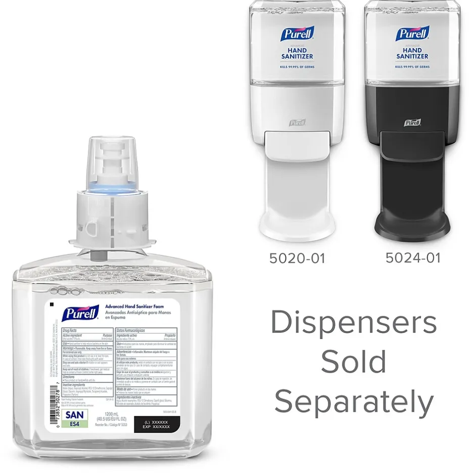 - Case Includes: 2 – PURELL Advanced Hand Sanitizer Foam, 1200 mL Refills for the ES4 Manual Dispenser. ES4 dispensers (5020-01 and 5024-01) are sold separately