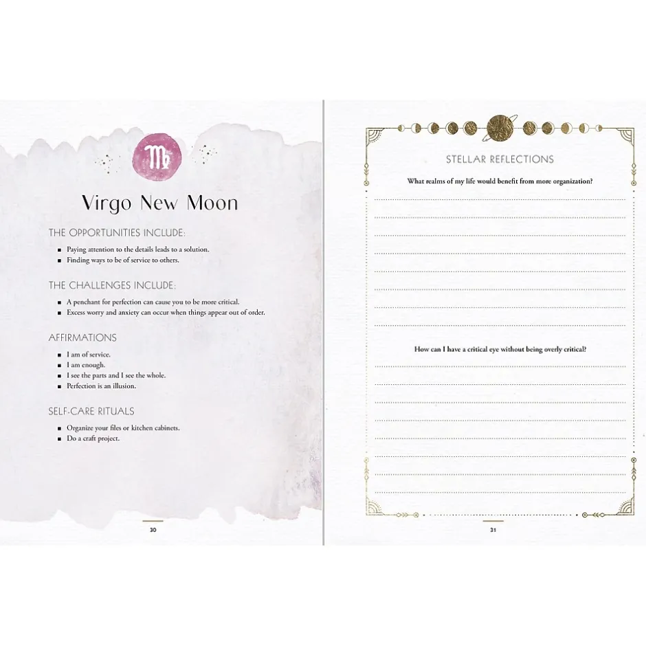 - You’ll find tailored stellar guidance and writing prompts for the 24 unique full and new moons that occur each year, Mercury, Venus, and Mars retrograde, planetary power points and each zodiac sign