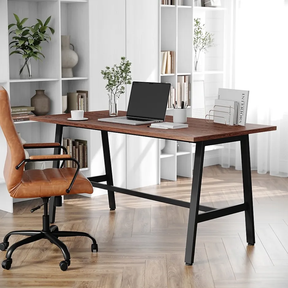 Foster big thinking during brainstorming sessions or encourage open communication and interaction between stakeholders during important meetings with this 60×30 commercial grade conference table. Available in timeless finishes that will blend well in any environment, this boardroom table will make a statement while providing ample space for multiple guests. The liquid and scratch-resistant 1 inch thick table top with a durable laminate finish on both sides and PVC edging increases durability for long-lasting use. The heavy-duty, powder coated, A-frame steel base comes with included hardware and easily attaches to the underside of the table into the predrilled holes. This conference room table holds up to 300 lbs. static weight, and features adjustable floor glides ensuring a level surface. Assembly takes less than 10 minutes and cleanup is easily achieved with a damp cloth.