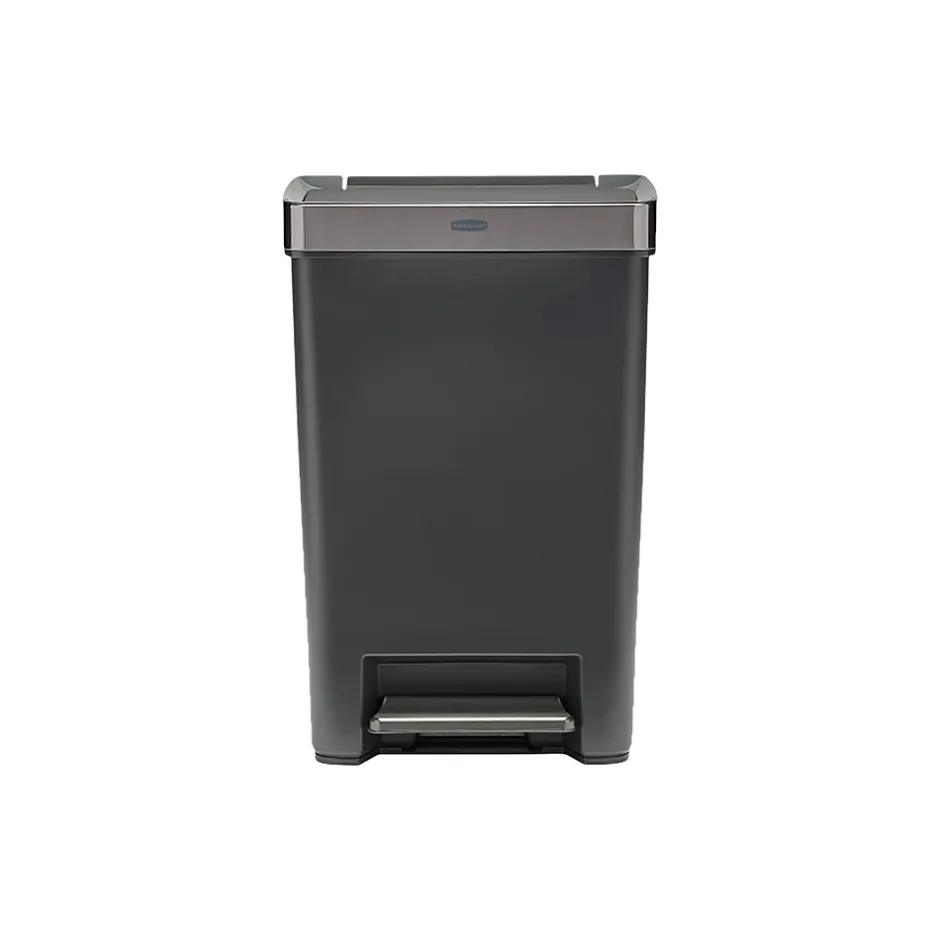 The Rubbermaid Premier Series III Step-on Container introduces a modern and warm aesthetic to your home. The charcoal resin body with charcoal stainless-steel rim and foot pedal complements kitchen appliances and hardware. Fingerprint resistant coating on the stainless-steel ensures a clean, premium look and feel to the container throughout the day. Flared Anti- Slide Base complements kitchen appliances while increasing container stability.