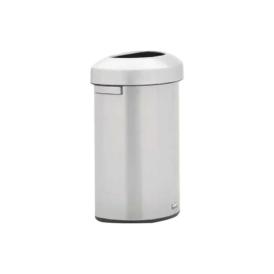 This Rubbermaid semiround trash can lets you dispose of waste items efficiently. Features handles for easy lifting and movement.