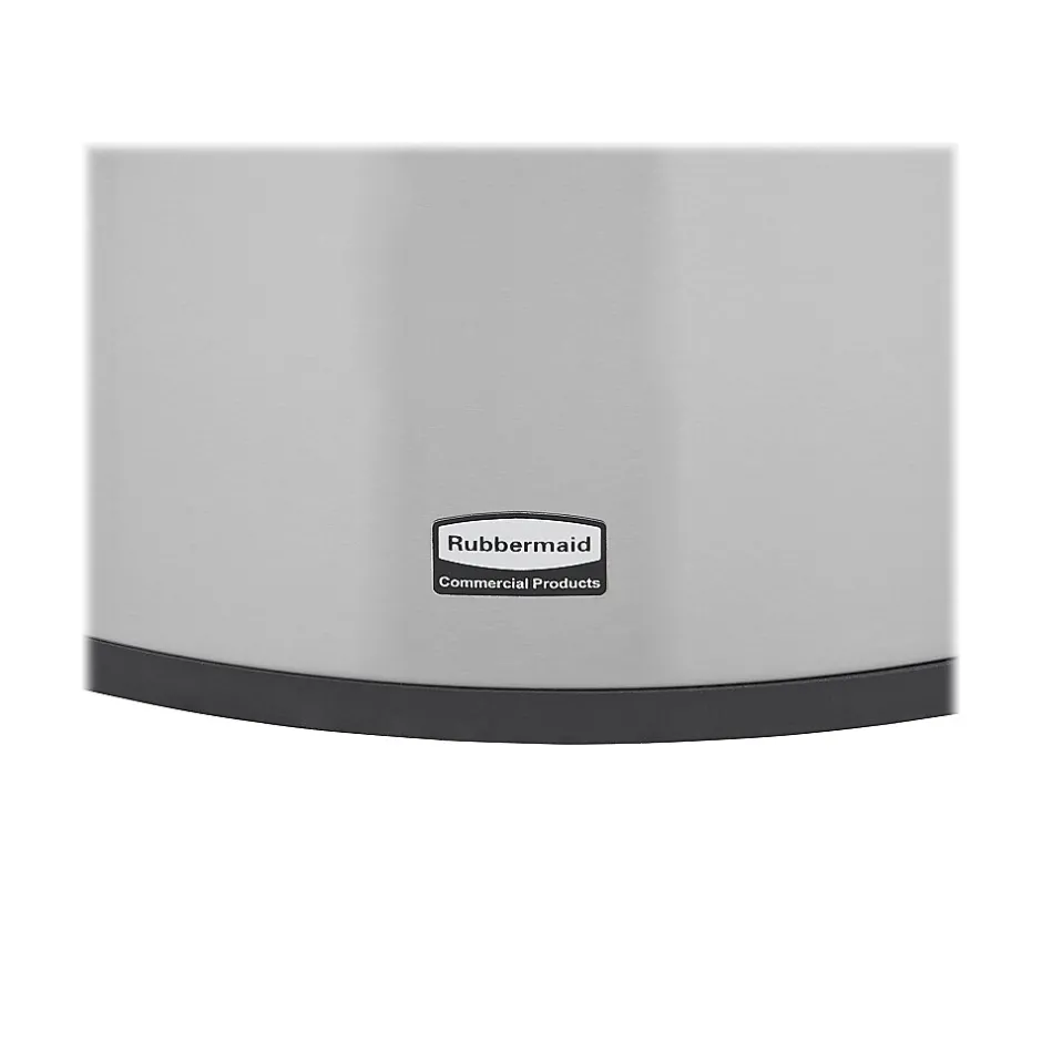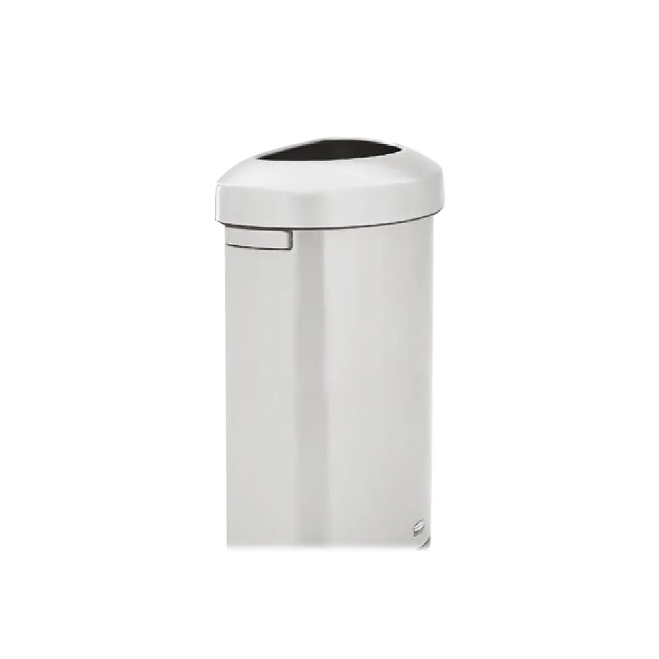 This Rubbermaid semiround trash can lets you dispose of waste items efficiently. Features handles for easy lifting and movement.