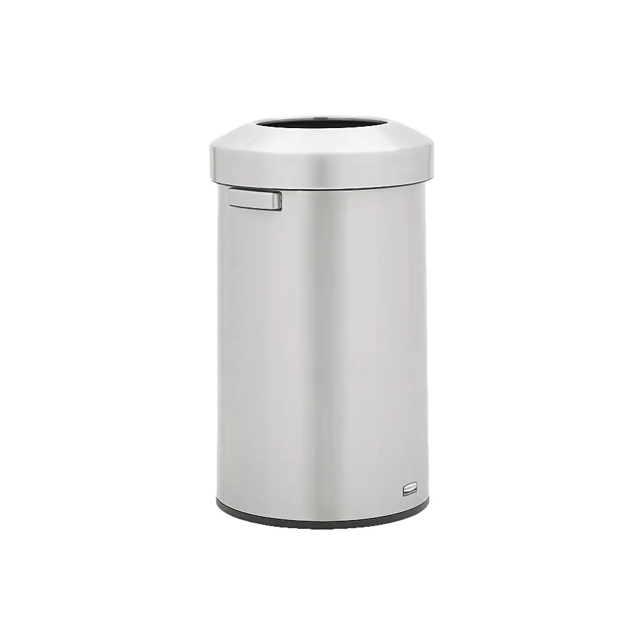 This Rubbermaid round trash can lets you dispose of waste items efficiently. Features handles for easy lifting and movement.