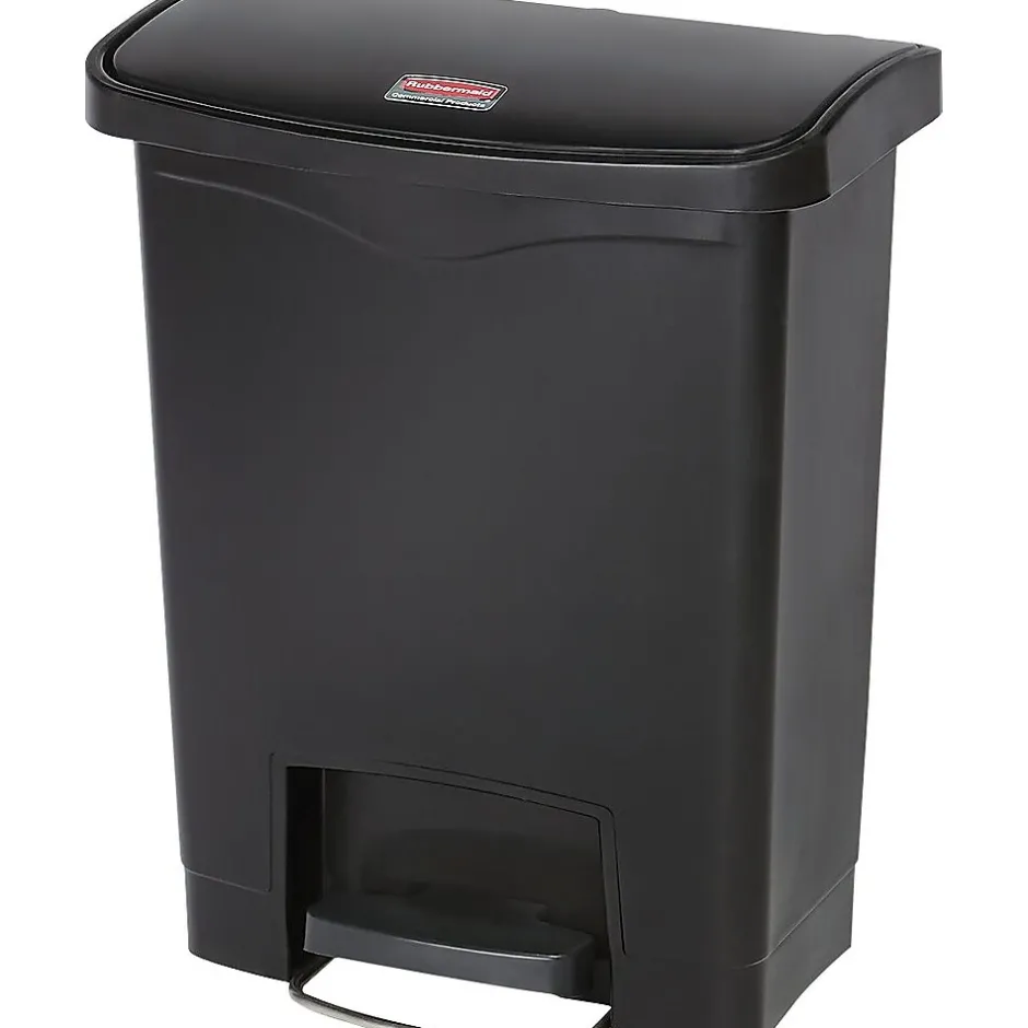 Rubbermaid Slim Jim Resin Front Step-On Trash Can, 8 Gallon, Black