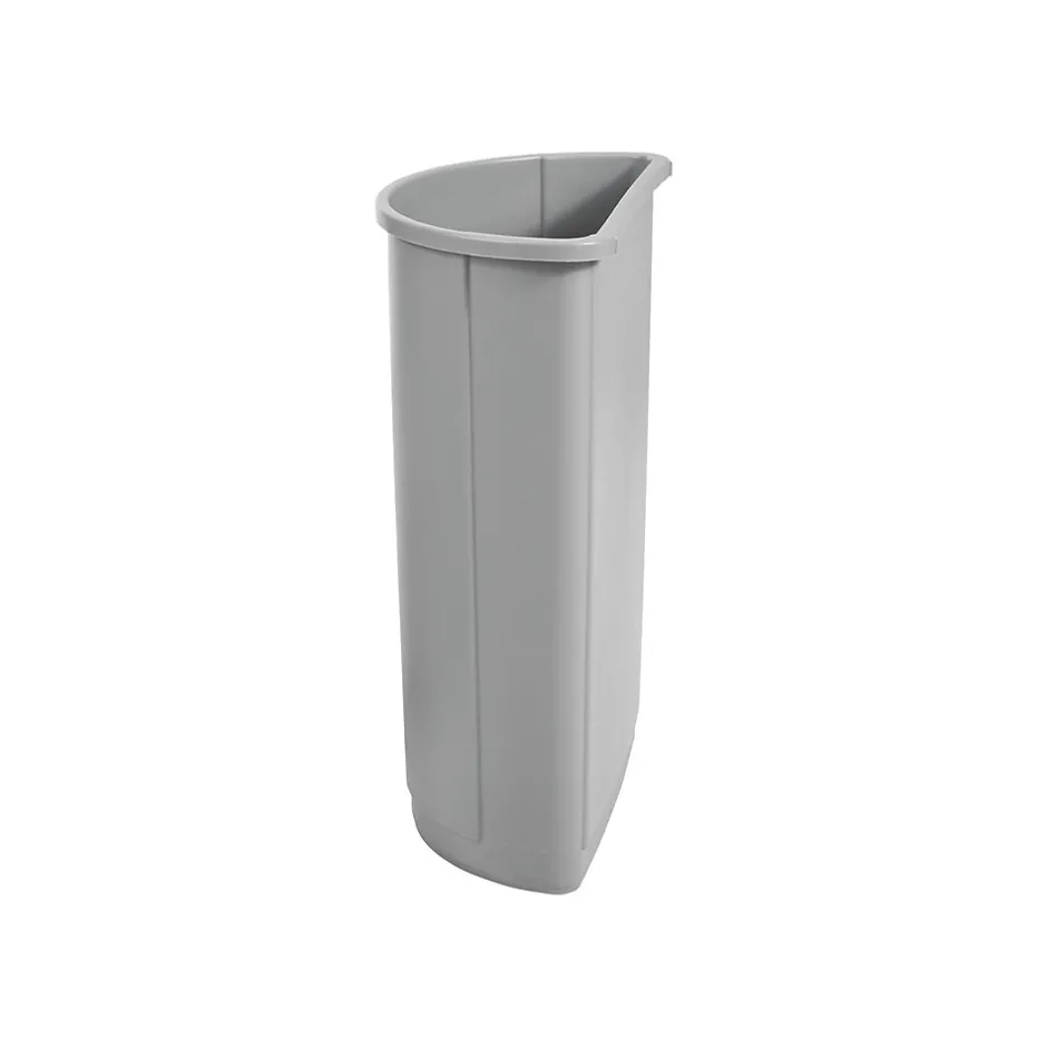 Create a centralized location for waste to be deposited with this half-round waste container. A compact half-round design makes the container great for use in large or small spaces, while the durable crack-resistant construction allows for indoor or outdoor use. The seamless design of this Rubbermaid Untouchable container makes it easy to clean when needed.