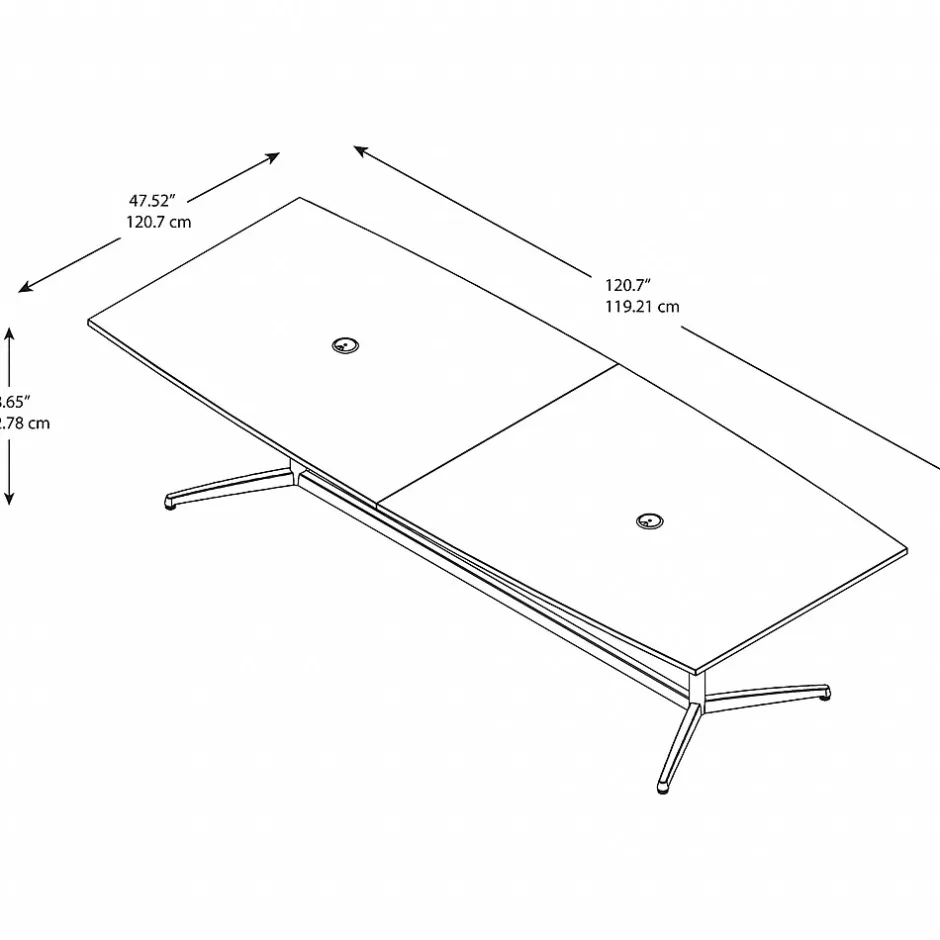 Bring your team together in an open or private office space with the Bush Business Furniture 120W x 48D Boat Shaped Conference Table. The spacious design comfortably seats 8-10 in a variety of environments from board rooms to executive offices or any collaborative setting. A finished underside prevents snagged clothing, while a contemporary metal base provides durability and includes adjustable levelers for a stable design on any floor. With wire management grommets, the long Conference Table keeps unsightly cables contained. Continuous edge banding protects against nicks and dings from collisions, and the thermally fused laminate finish resists stains and scratches throughout years of everyday meetings. The commercial-grade Boat Shaped Conference Table meets ANSI/BIFMA quality test standards and comes with a Bush Business Furniture Limited Lifetime Warranty. Browse the complete line of Conference Tables, available in a variety of styles and finishes to complement your office. American made with U.S. and imported parts.