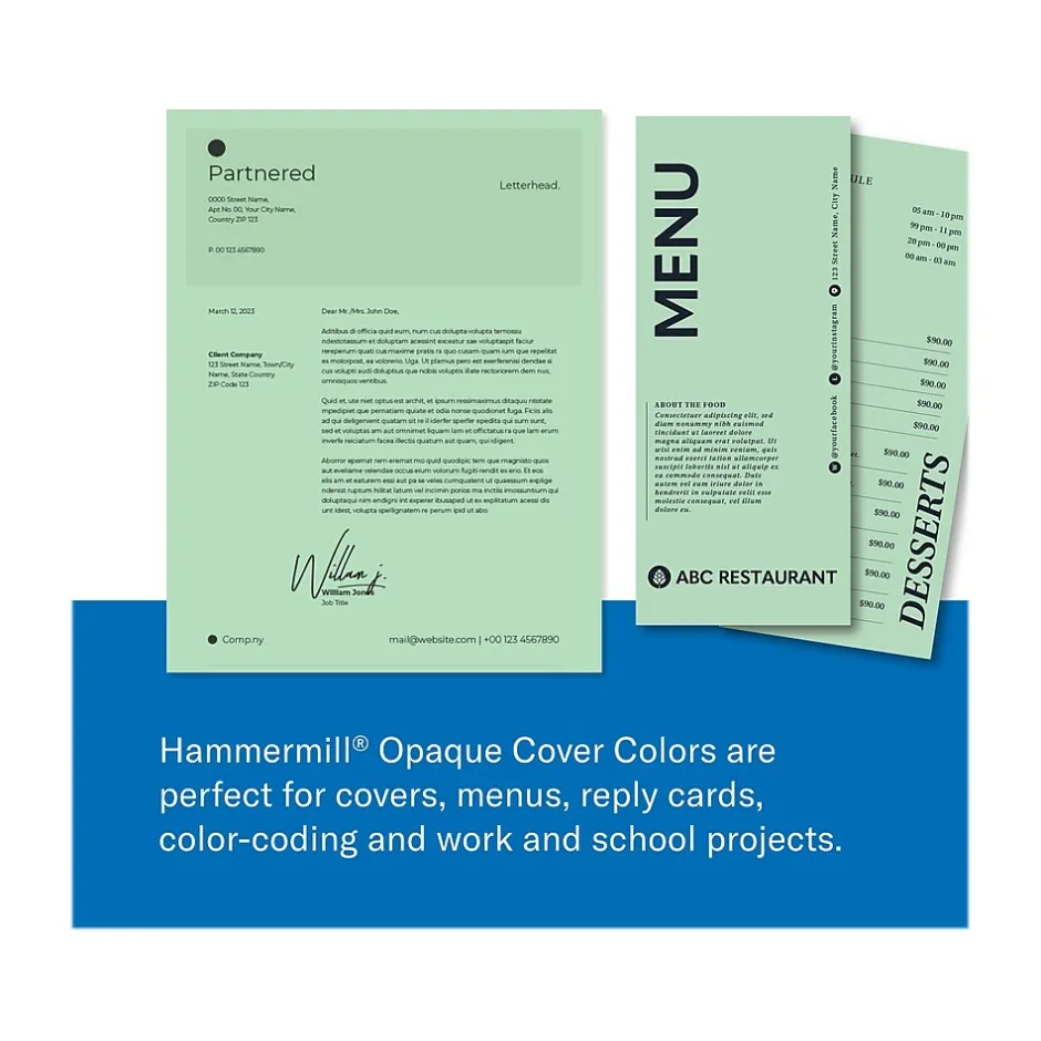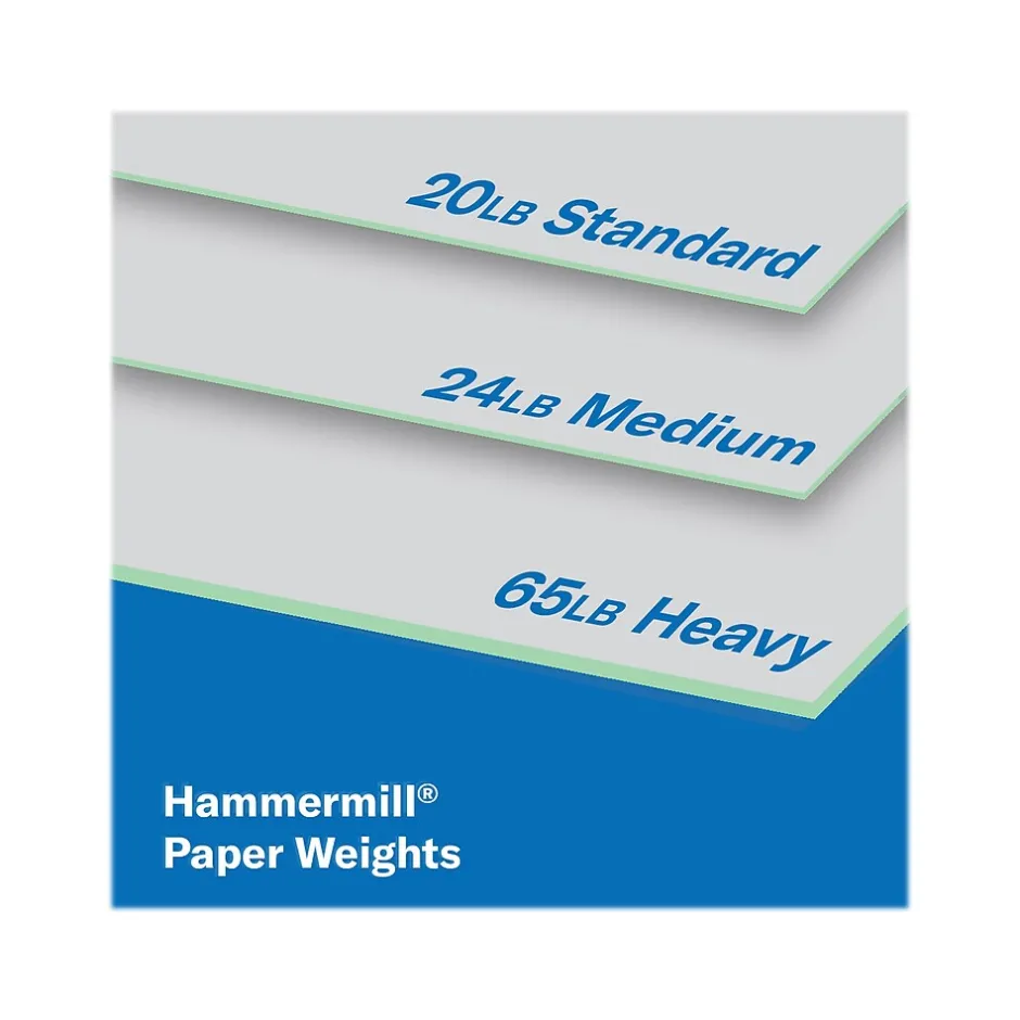 The Hammermill opaque multipurpose heavyweight paper is designed to coordinate with Hammermill colors or stand out boldly on its own. Perfect for covers, menus, reply cards, signs and notices, color-coding, work and school projects.
