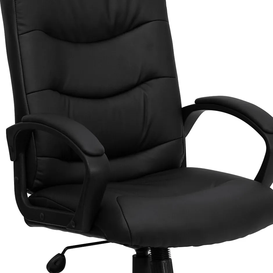 Upgrade your office seating with this mid-back black LeatherSoft upholstered swivel task office chair. A mid-back office chair offers support to the mid-to-upper back region. Chair easily swivels 360 degrees to get the maximum use of your workspace without strain. LeatherSoft is leather and polyurethane for softness and durability. The tilt lock mechanism rocks/tilts the chair and locks in an upright position while the tilt tension adjustment knob adjusts the chair’s backward tilt resistance. The pneumatic adjustment lever will allow you to easily adjust the seat to your desired height. This computer chair is perfect for the office or in the home. From behind the desk to the meeting room this chair can provide a seamless addition to your work space.