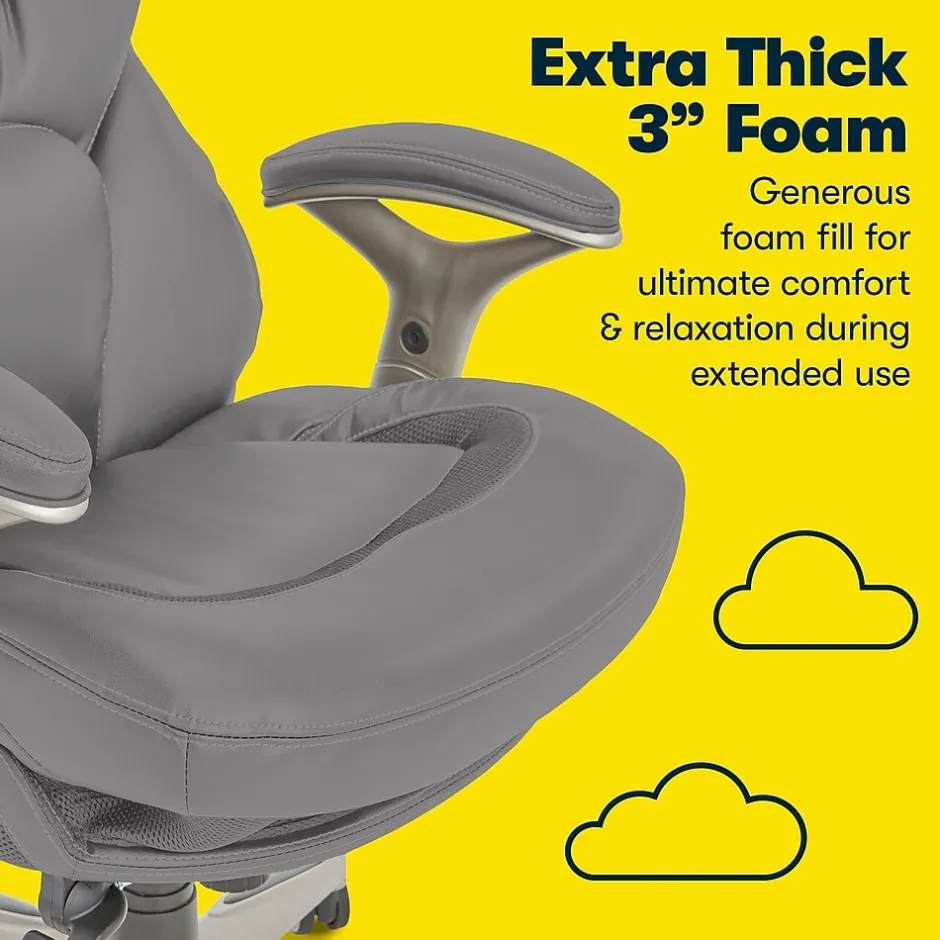 Help promote strength and flexibility in your back while you work with the Serta Back in Motion Executive Office Chair. This ergonomic office chair helps users become more productive and efficient by maximizing lower back support and comfort while seated. Its unique Back in Motion Active Seat Technology swivels the lumbar forward, providing the same effects as a pelvic tilt exercise by promoting spinal movement and flexibility in your core. Push-button adjustable armrests and pneumatic height adjustment allow the leather office chair to be quickly and easily customized to find the right fit for you. The multilayered cushions are soft yet supportive, so you’ll feel refreshed even after a long day.
