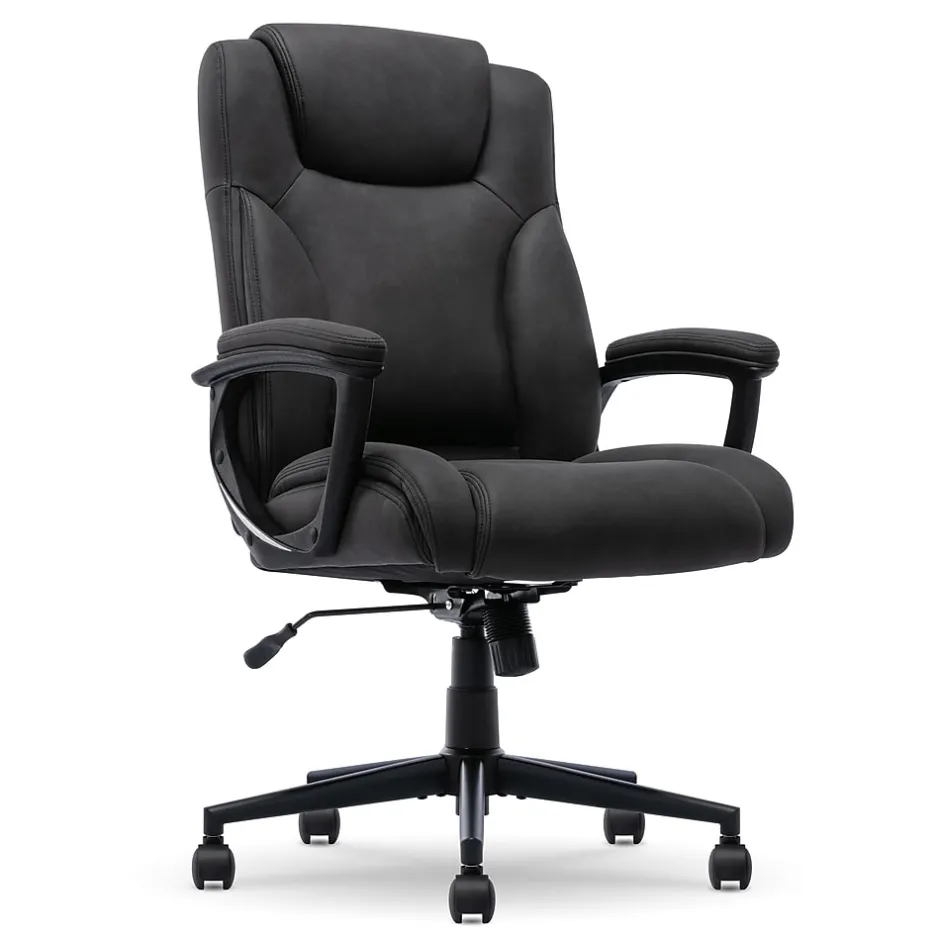 The better you sit, the better you’ll feel. Whether for work, play, or any other activity that has you sitting in our chairs, we believe comfort is everything. We know it’s a big responsibility and take it seriously, just as we do with our mattresses. With over 15 years of making chairs and innovating with designs, materials, and technology, Serta knows what it takes to give you a comfortable sit. Crush your to-do list and conquer the workday with the Comfort Eco chair. This modern desk chair focuses on prioritizing your well-being without compromising on style. Its simple and sleek form, sculpted arms, and piped edges with tailored double-stitching bring a sophisticated style fit for any executive workspace. Mindful of the way your body sits and moves, the ergonomic mid-back adapts to your posture with gentle contours that conform to your natural spinal curves. The lumbar support also takes the strain off your lower back and encourages you to sit without slouching. Sitting at your desk all day is easier with padded body pillows in the backrest that relieve tension and pressure. The waterfall edge seat keeps you comfortable with layered contours and a semi-plush cushion that’s stuffed with high-density foam. Covered in luxuriously soft velvet with 4 neutral colors in Brown, Black, Light Gray, and Light Brown, find the right shade to complement your decor. The 360° swivel base on double-wheel casters glides smoothly across carpets or rugs, and can handle up to 275 lbs. Finding your ideal seated position is a breeze with the one-touch side lever for convenient height adjustment and tilt-lock to match your work set-up. The Serta Comfort Eco chair will be a welcoming work companion for the busy body in the office or at home. Whether you’re answering emails, hopping on video calls, or diving deep into your work, this reliable chair will provide the comfort and support you need to stay productive.