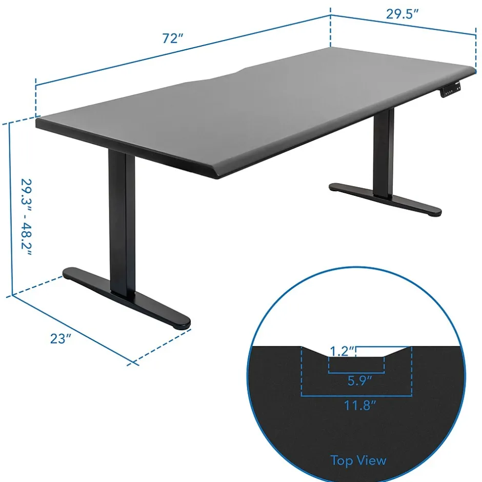Our Sit-Stand desk is designed to provide exceptional ergonomic comfort and optimize workspace functionality. With a dual-motor system, it allows for quiet and seamless height adjustments between 29.3″ and 48.2″, giving users the flexibility to switch between sitting and standing effortlessly. The spacious 72″ tabletop offers ample room for office equipment, while the beveled front edge is designed to minimize wrist strain. A built-in cut-out ensures efficient cable management, maintaining a tidy and organized workspace. With three memory settings on the user-friendly touch control panel, you can quickly save and switch between your favorite height positions.