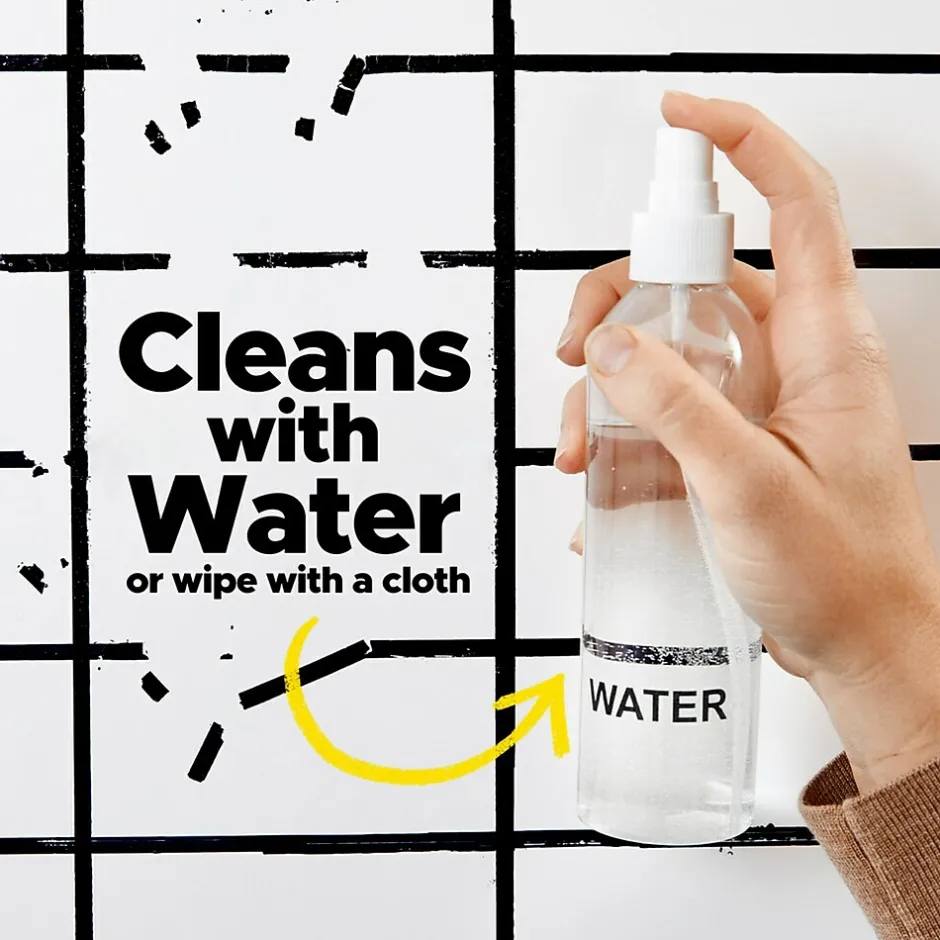 - CLEAN WITH WATER, EVEN PERMANENT MARKER – To clean, wipe away dry erase marker with provided cloth and wipe away permanent marker with water and provided cloth. No chemicals needed to clean