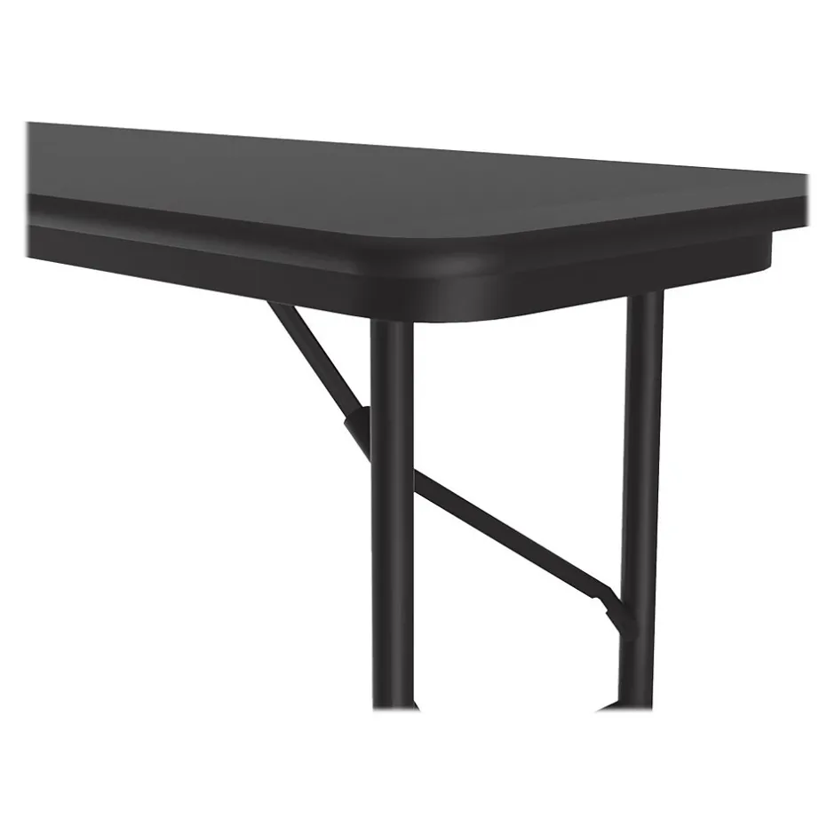 The Correll folding table is durable for heavy-duty home, office, school, church, food service, and commercial use. Its thermal-fused laminate top is water-, stain-, and dent-resistant. The table folds for portability and storage space.