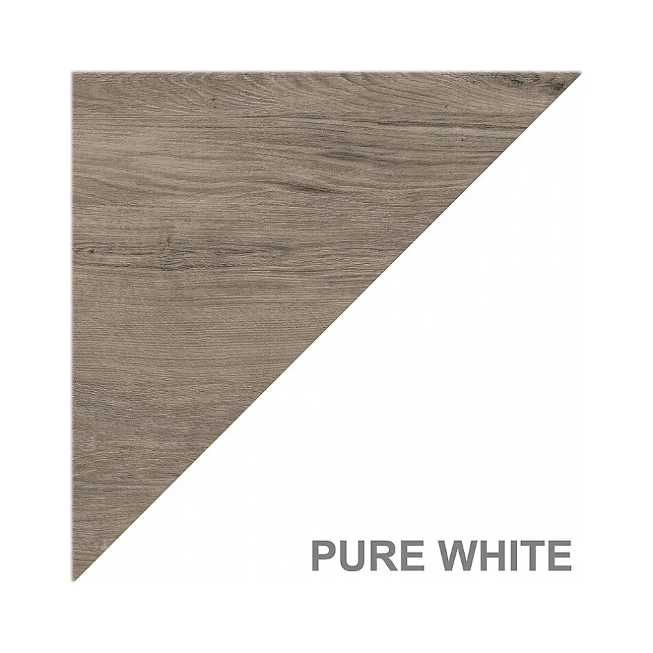 - Laminate over engineered wood in shiplap gray and pure white finish