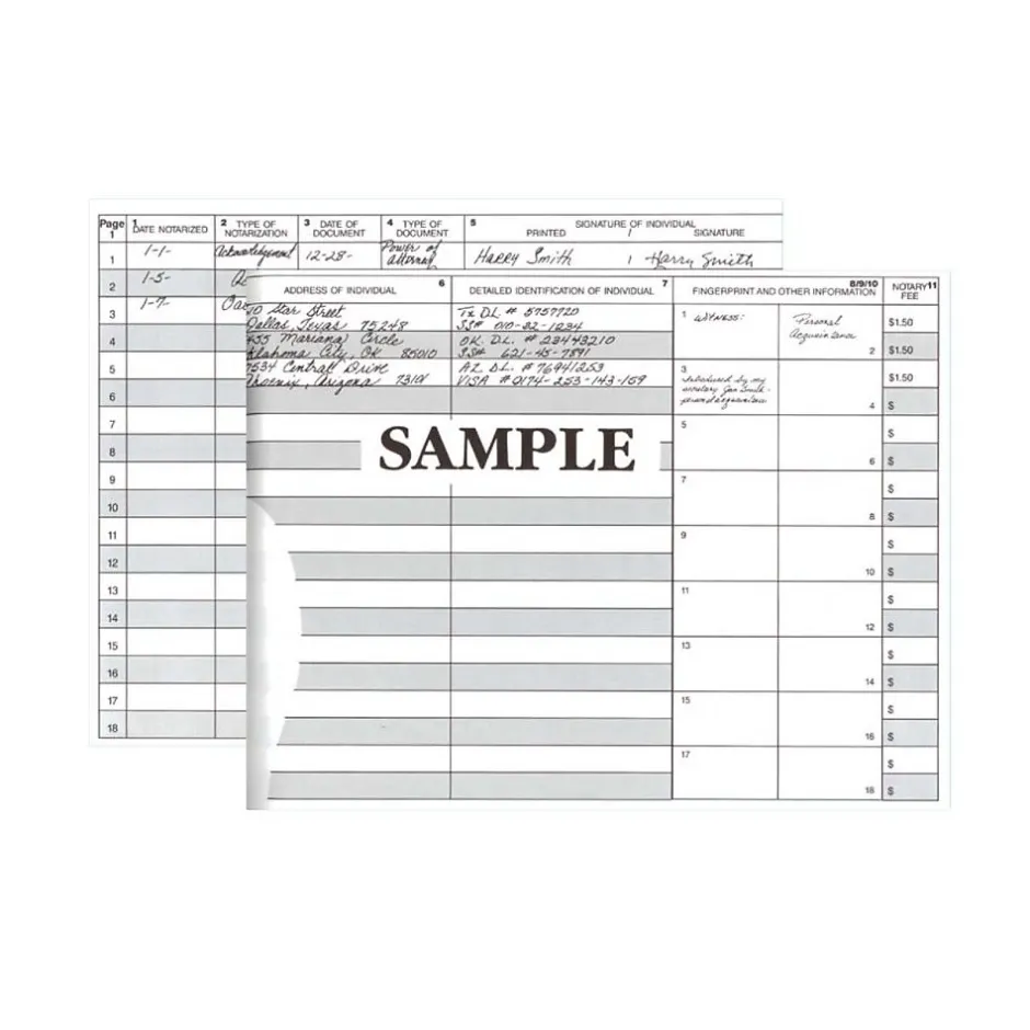- Record of: date and type of document, name and signature, witness, address, fee charged, and other pertinent information