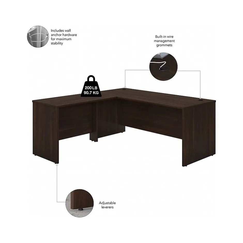 - L Shaped Desk surface offers space to spread out and integrated cable management to conceal computer cords