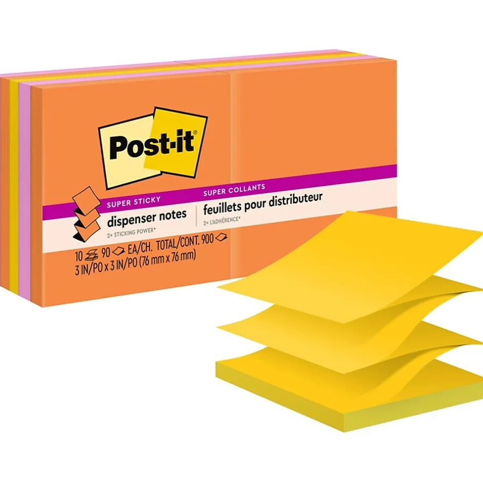 Uplift your spirits and messages via the vibrant, strong colors of the Energy Boost collection. Whether jotting down your daily to-do’s, brainstorming big ideas, studying or setting reminders, colors and ideas are always brighter together. These sticky notes feature 2X the sticking power and are accordion-style notes that work to refill Post-it Note Dispensers. They also stick and re-stick – allowing you to move your notes with you throughout your day. They’re ideal for walls, doors, windows and other vertical surfaces, and like all Post-it Notes, they stick securely yet remove cleanly without damage. Keep your ideas across your notebooks, classroom books, calendars or other documents. No tape or tacks are needed with adhesive notes, saving you money and time on office products or school supplies. A great memo pad, these are ideal for using for notes or reminders to yourself or others. Post-it Super Sticky Notes are the perfect solution for shopping lists, reminders, notes on computer screens, time tracking, to-do lists, marking cables, color-coding documents, reminding kids to do chores, storyboarding, scratch paper and agile processing. Each notes sheet is approximately 3 in. x 3 in., with 90 sheets per pad and 10 sticky note pads per pack. These colorful sticky notes include colors from the Energy Boost collection including orange, yellow and pink. All Post-it Notes are sourced from certified, renewable and responsibly managed forests, and all Post-it Notes are recyclable, so you can recycle them when they are no longer needed.