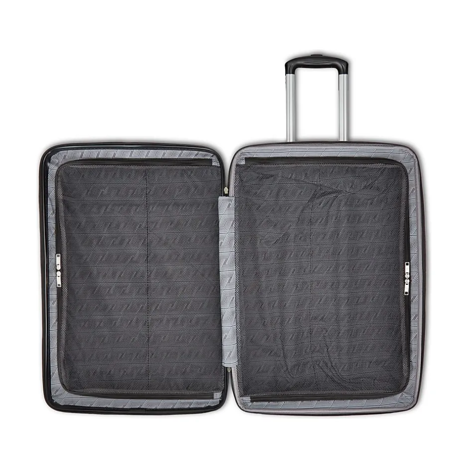 The Samsonite Alliance SE carry-on spinner in a boxy yet modern design will never go out of style. The extra packing volume allows maximum packing capacity for the extended short journey. The butter-smooth rolling dual spinner wheels, simple yet functional interior with two-sided silky soft mesh dividers, and overall case expansion accommodate for extra packing needs, all complete with a highly scratch-resistant texture for the maximum durability.