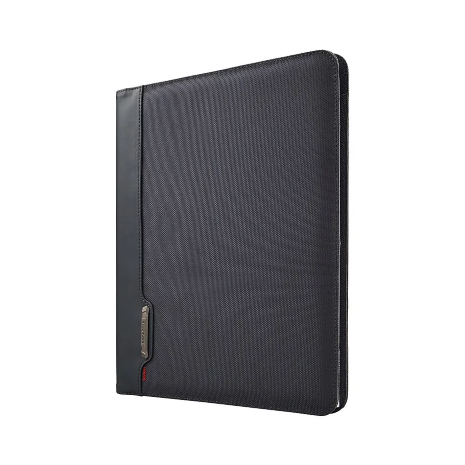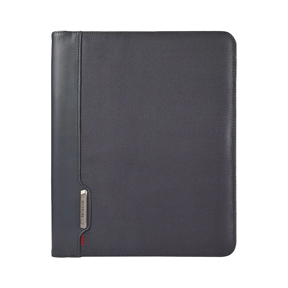 Access pens, notebooks, and other accessories quickly with this business padfolio. The built-in cardholders make it simple to keep a business card on hand, while the convenient interior pocket keeps loose pages secure and partially visible. This Samsonite Xenon Business padfolio comes in steel gray and is made from ballistic fabric, producing a high-quality look and feel.