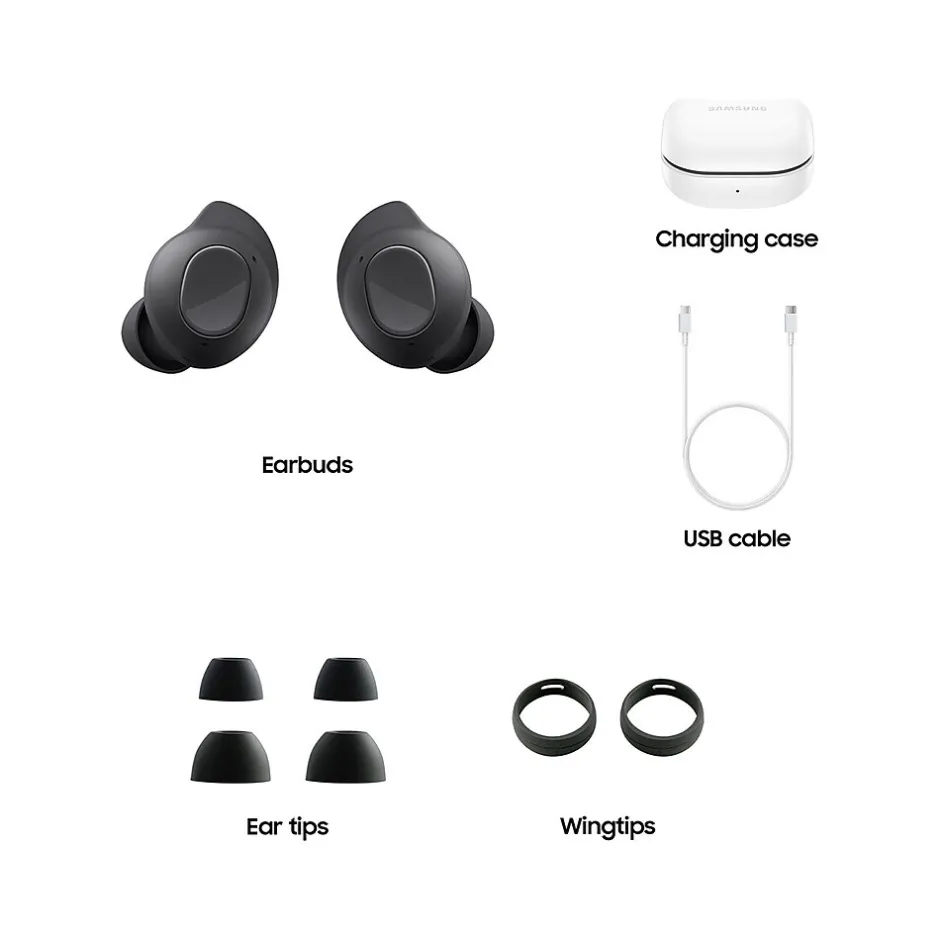 Meet Galaxy Buds FE, the new audio solution that fits perfectly into your workday. With a newly redesigned wingtip and your favorite Galaxy innovations, you can stay locked in to your workflow comfortably with the great sound quality and features you expect from Samsung. Listen in comfort throughout your day with a newly redesigned wingtip that keeps your Buds securely in place. Choose from a variety of wingtip sizes for a personalized fit that feels so natural, you may forget you’re wearing Buds at all. Immerse yourself in a world of sound throughout your day. Galaxy Buds FE feature Active Noise Cancellation to help minimize the distracting sounds in your environment, from idle chatter to an airplane flying overhead. Galaxy Buds FE pair easily to your other Galaxy devices. Just open the case, tap to connect and your paired Buds FE show up in your list of devices. With Auto Switch, Galaxy Buds FE connect to whatever device you are on so you don’t miss a beat. Stream a webinar on your Tab and switch to answer a call on your phone through your Buds FE. Once you are done, your Buds connect back to your webinar. Hear and be heard clearly on calls with your Galaxy Buds FE. They sense distracting background sounds and then minimize them for better call clarity. No more fumbling to find the controls for your Buds. With clearly defined areas for tapping and gripping, it’s easy to secure them, pause the audio and change the volume with a simple tap. Not sure where your Buds are? SmartThings Find will lead you to their last location. Plus, Lost Mode relays a message to whoever found your Buds to help you retrieve them easily. Get a hand without lifting a hand. Activate your personal voice assistant on your Galaxy Buds FE to help manage your calls, check the weather and more. Simply speak to activate Bixby and then let it know how it can help. Pair easily with your Galaxy devices. Simply open the case and tap to connect, pair and sync. Whether pairing with your phone, Watch, Tab or PC, Buds FE automatically switch audio sources when an alert or call comes in to keep you connected to what matters. Everyone deserves a good audio experience on the device they have. Galaxy Buds FE are Android compatible, which means you can listen seamlessly across all your favorite devices.