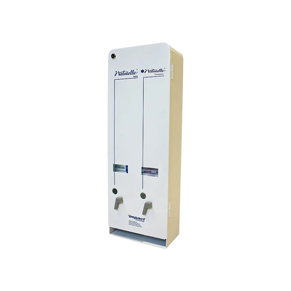 Ensure guest convenience when you install this Impact feminine product dual-dispenser machine in your building’s restrooms. Separate dispensers for Stayfree maxi pads and Playtex tampons offer users two choices to meet their personal needs, while the all-metal construction delivers enduring quality. This Impact feminine product dual-dispenser machine features coin payment mechanisms for easy vending.
