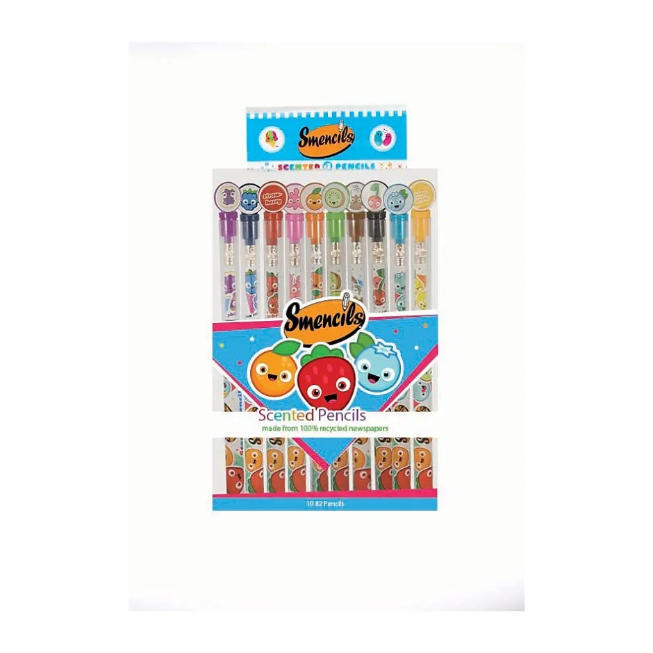 Scentco Inc. Smencils10-pack Scented Pencils. HB#2 Pencils. Recyclable plastic freshness tubesScents Guarnatee to last for up to 2 years. Infused Scented 100% Recycled Newspaper. Scents: Cola, Orange, Lollipop, Cupcake, Sour Apple, Jelly Bean, Jelly Donut, Black Cherry, Rootbeer