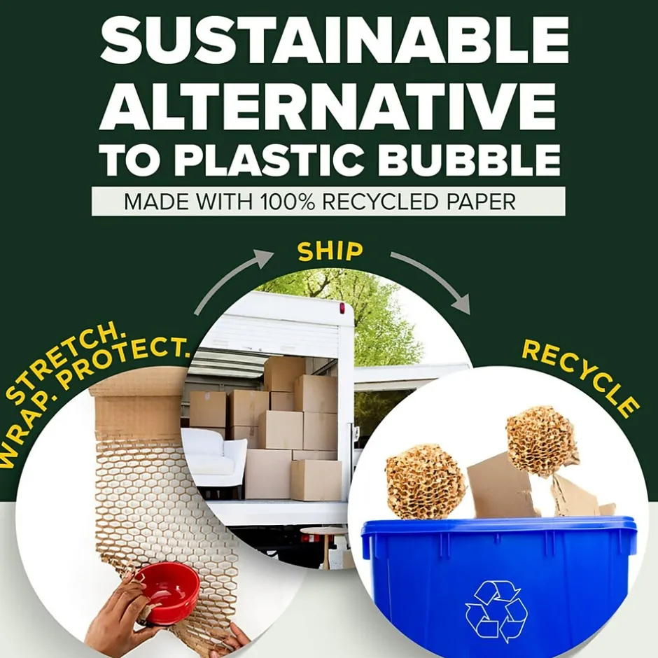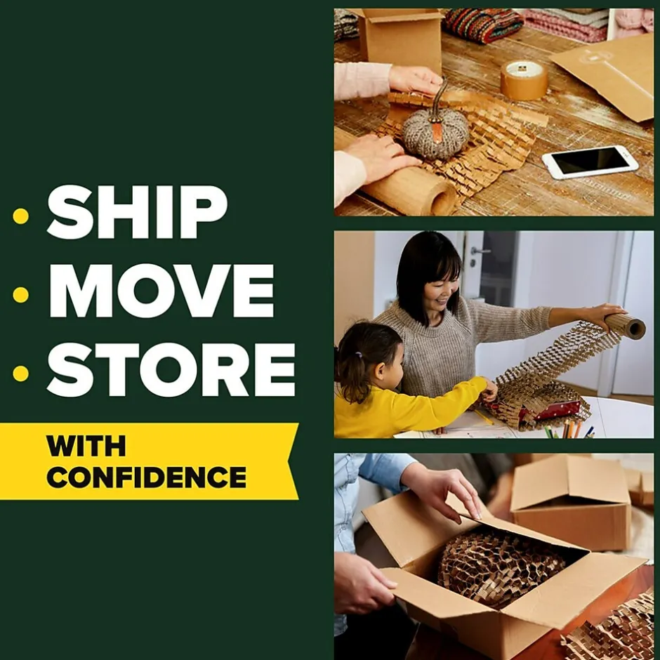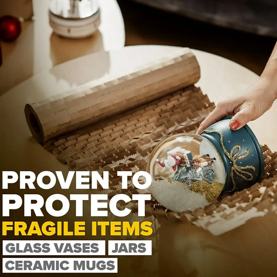 - PAPER THAT PROTECTS: This paper wrap may feel different than what you’re used to. Specifically designed by scientists to withstand the jostles of transit, this wrap is made with intricately cut 100% recycled paper to act like little fingers, interlocking onto itself to conform around your items like a durable nest of protection