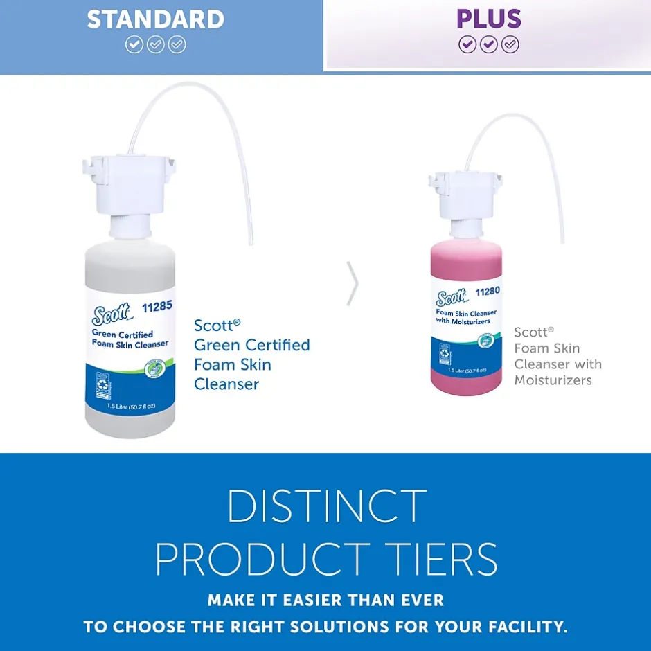 Scott® is one of the world’s most recognized restroom brands with over 150 years of experience keeping your staff and guests healthy. Show you care by providing Scott® Green Certified Skin Cleanser, which offers a reliable balance of efficiency, performance and value so that you’re helping to stop the spread of germs with a trusted hand soap solution. This Scott® brand foaming hand soap also helps you show your commitment to being environmentally conscious, since it is fragrance-free, dye-free, ECOLOGO certified, and comes in a recyclable bottle. Scott® hand soap keeps hands clean in schools, workplaces, stores, and more. Because the soap is NSF E-1 rated, it is also suitable for use in food processing and food service settings. When you’re charged with maintaining washrooms in busy environments, Scott® soap dispenser refills maximize your productivity, while ensuring staff and guests at your facility stay clean and healthy.