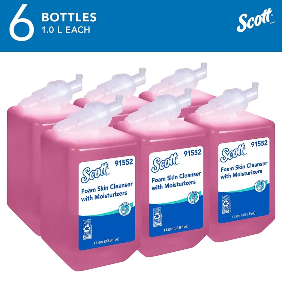 Replenish soap dispensers with these foaming hand cleanser refills. The floral scented soap produces a creamy lather with moisturizers, encouraging users to give hands a thorough cleaning, and the cassettes come ready to load in compatible dispensers to prevent spilling. A seal on each container keeps the soap free from contaminants. Each Scott Pro foaming hand cleanser cartridge contains 1 liter of soap, perfect for high-traffic areas.