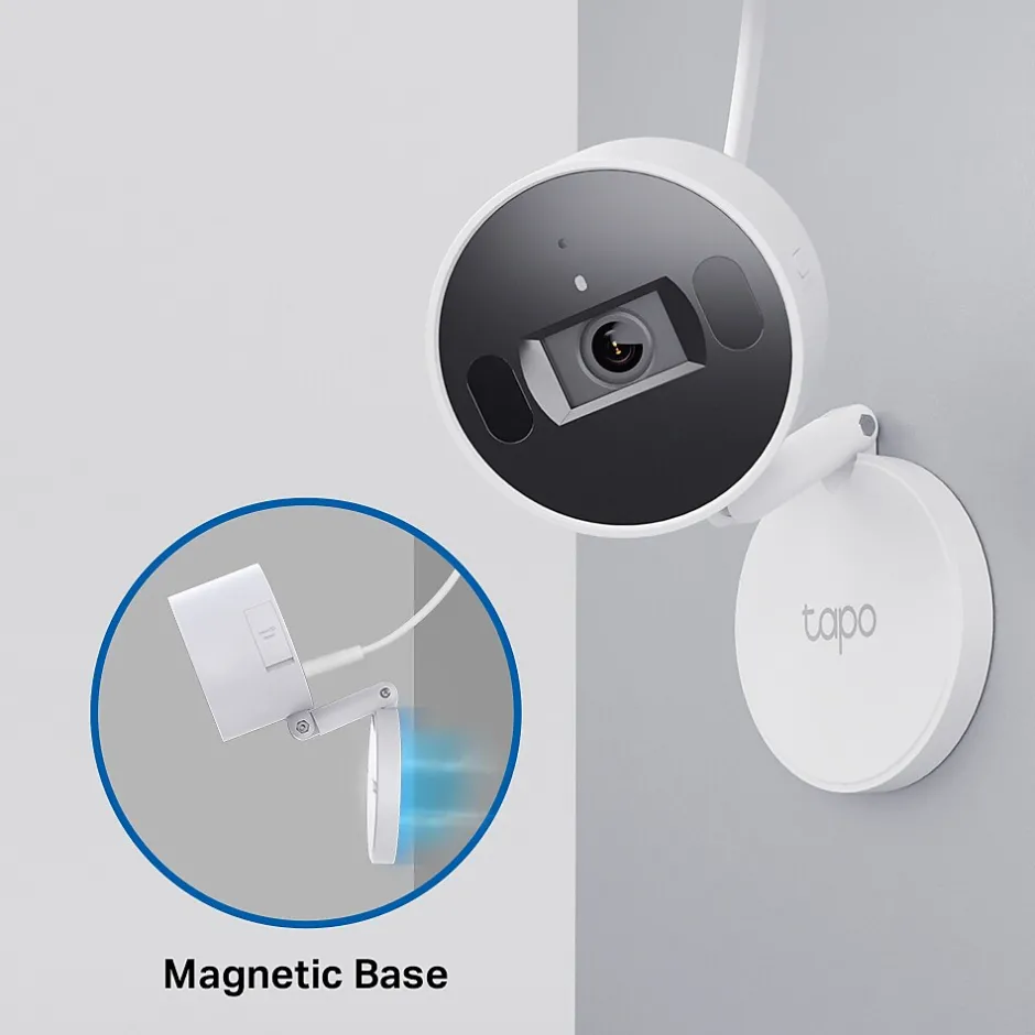 - Magnetic Base with A Long Power Cord – Mounting the Tapo C125 is simple with a strong magnetic base that can be used to stick the camera in desired angles and locations. The long power cord provides adequate distance to plug in the camera to power.
