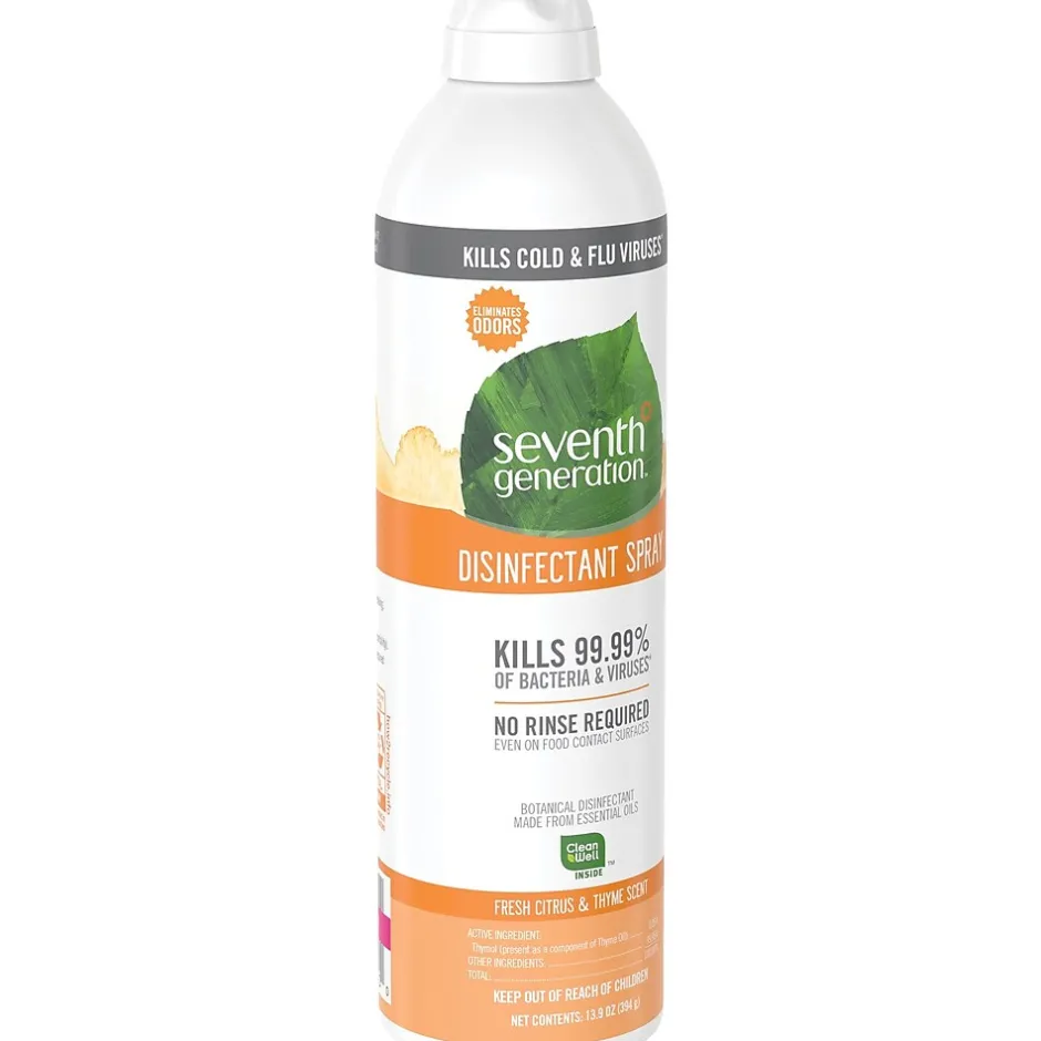 The active ingredient, Thymol, is made from essential oils (a component of Thyme Oil). Bag-on-Valve aerosol spray is powered by compressed air. No rinse required even on food contact surfaces. Disinfects and deodorizes. Non-flammable. EPA Registered. Made in the USA.