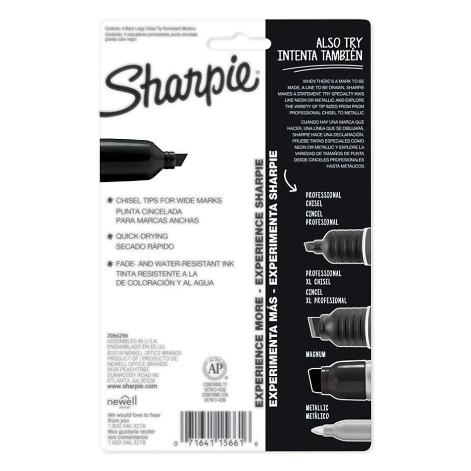 Express yourself permanently with chisel tip markers that make broad, medium and fine strokes. In the classroom, office, or home you can apply permanent markings to paper, wood, metal, plastic and most other materials. These Sharpie Pro King Size markers feature resilient ink that is waterproof, fadeproof and dries quickly to eliminate smudging and provides vibrant impressions for a long time to come.