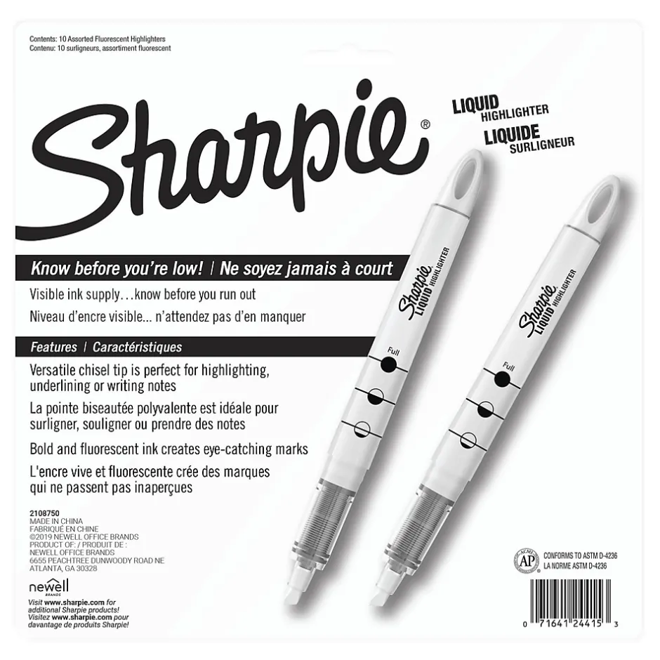 - Sharpie Liquid Highlighters with visible ink supply that allows you to know before you’re low!