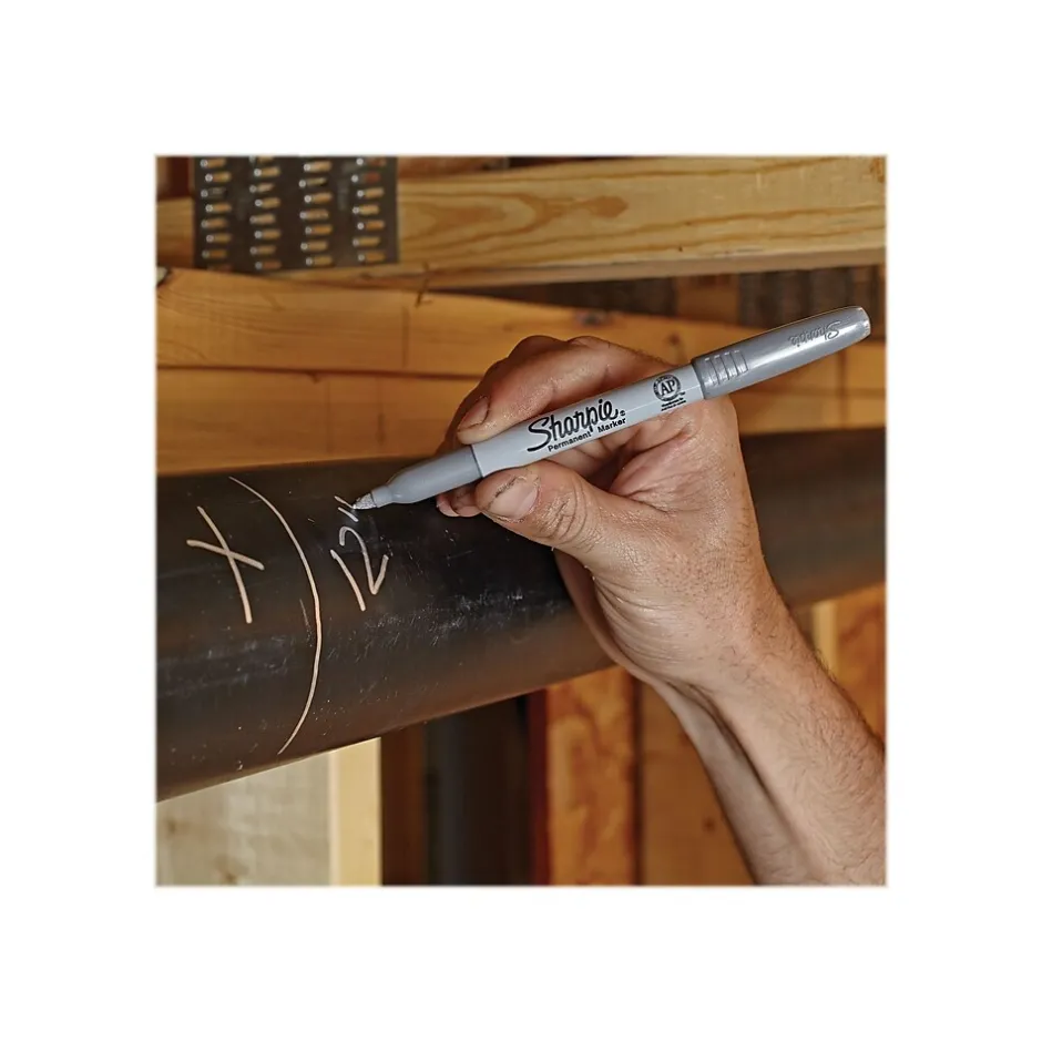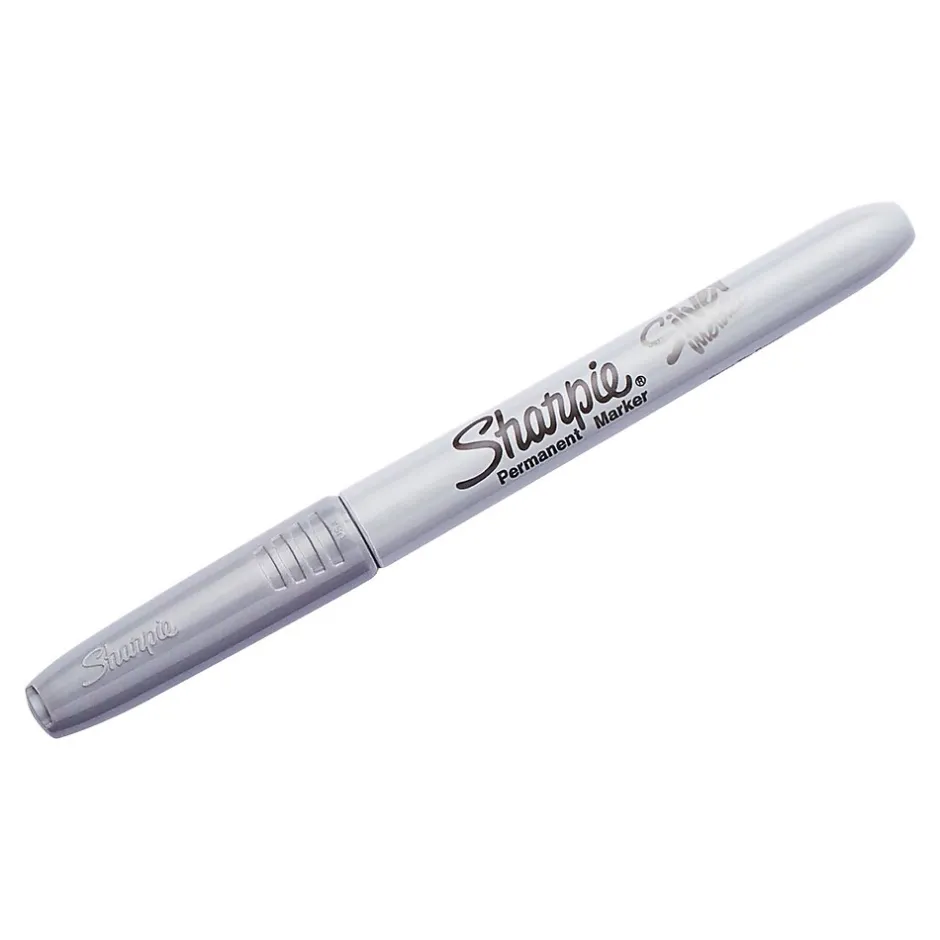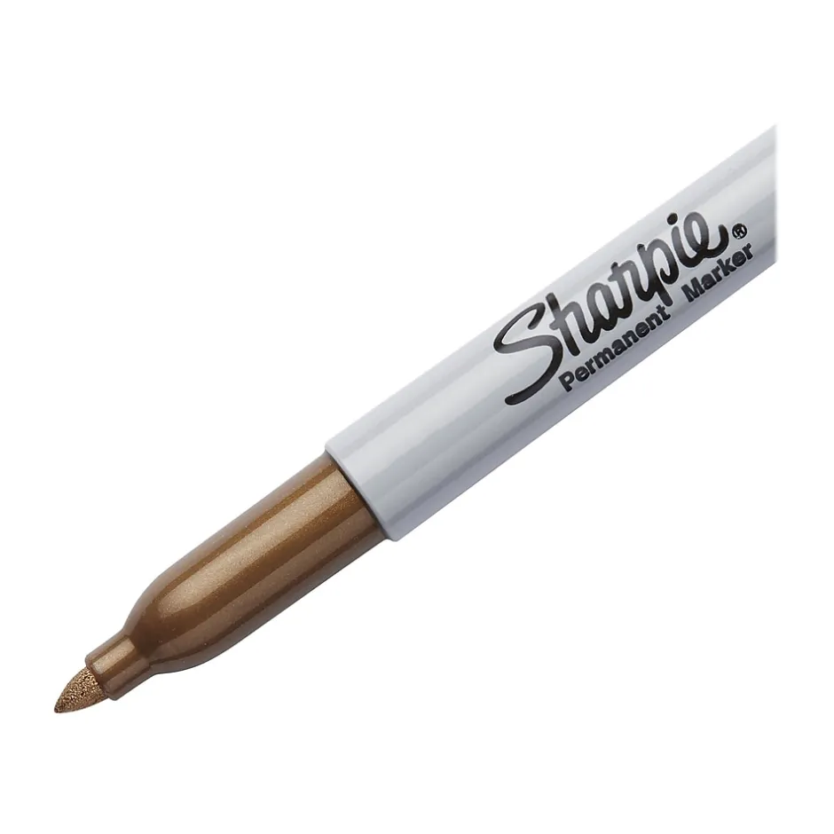 Add glimmering emphasis to artwork or messages with this 2-pack of metallic permanent markers. The fine-point tips are perfect for creating beautiful lettering or patterns, while the bright, water-resistant ink stands out on light or dark surfaces without fading. The ink in these Sharpie permanent markers flows smoothly without shaking to let you begin writing immediately, and the quick-drying formula prevents smears or smudges.
