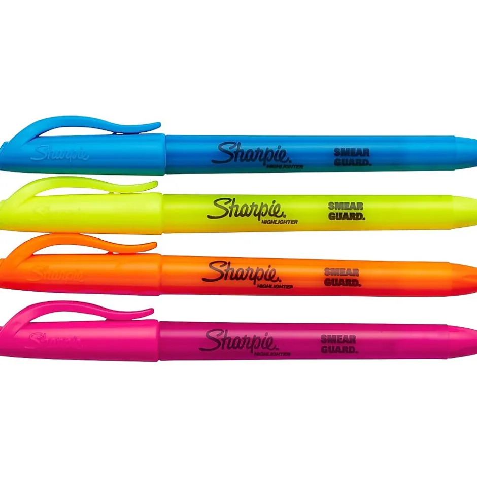 No highlighter shines as bright. Perfect for when info is high priority and precision is a must, the Sharpie pocket highlighters make everything highly visible. These versatile highlighters are designed to fit effortlessly in your pocket or clip to your shirt, so they’re easy to take with you anywhere. With brilliant colors in transparent, quick-drying ink and an easy-gliding chisel tip that highlights and underlines both wide and narrow lines of text, the Sharpie highlighters make your most important thoughts and notes jump off the page in an array of easy-to-read shades. These Sharpie highlighters are must-have for travel itineraries, camping checklists, escape plans, and the rest of life’s major high points.