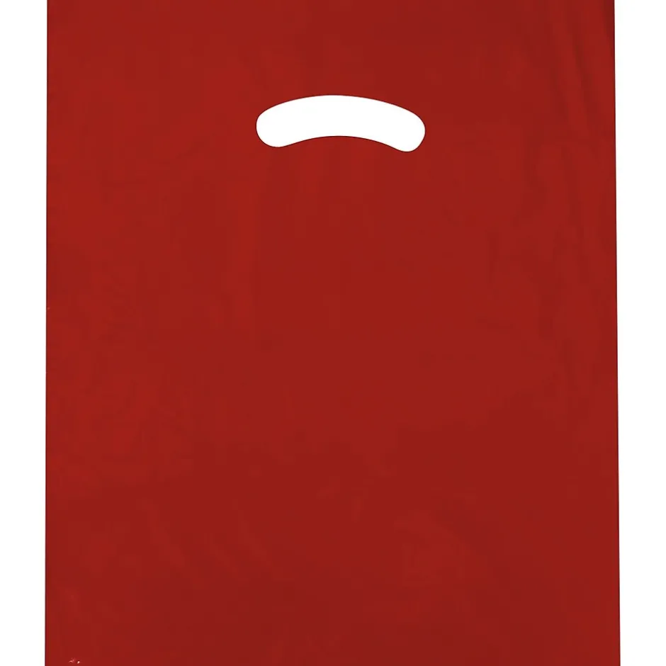 Command Packaging Die-Cut Handle Bag is a 15″ wide red gusseted bag with a length of 18″. It includes a quantity of 500 bags in each case and is ideal for retail business packaging.