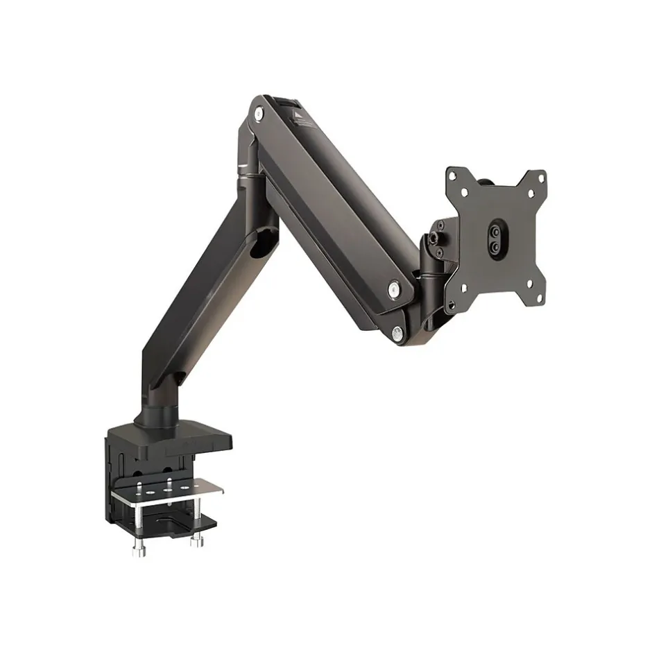 Gas spring assisted full-motion (tilt, swivel, rotate, and height adjustment) articulating singe monitor desk mount.