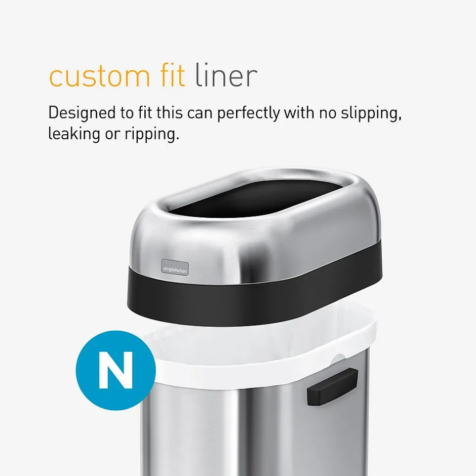 Simplify trash duties with these can liners. Their drawstring handle makes them easy to close and lift, and the extra-thick plastic prevents rips and tears. These code N custom-fit simplehuman garbage bags keep your trash can’s interior completely shielded without displaying a large overhang.
