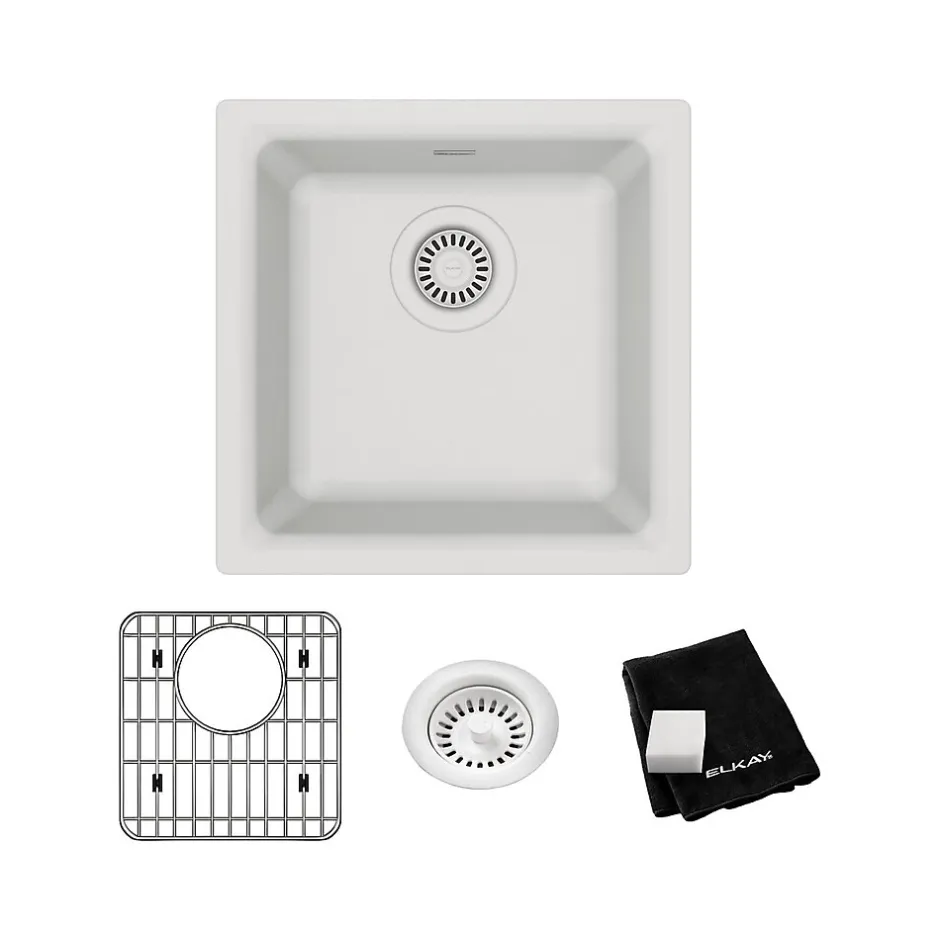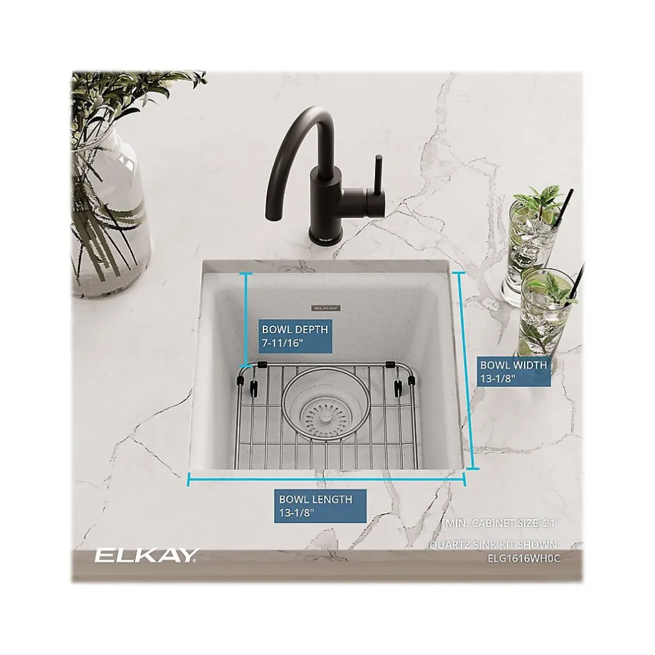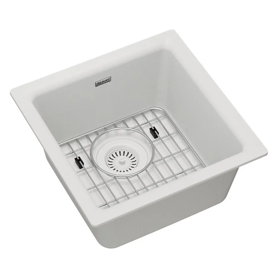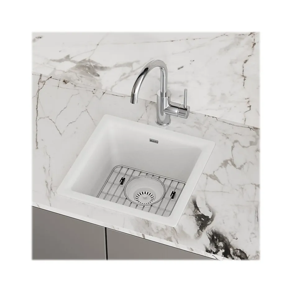 The Elkay Quartz Classic sink has a smooth surface and a visible depth to its structure. Crafted from natural quartz, the sink comes in a UV-stable white finish to add an unexpected pop of color to your space. Whether it’s a kitchen sink or a prep, bar, or laundry sink, this composite sink has the durability you need to take on tough tasks.